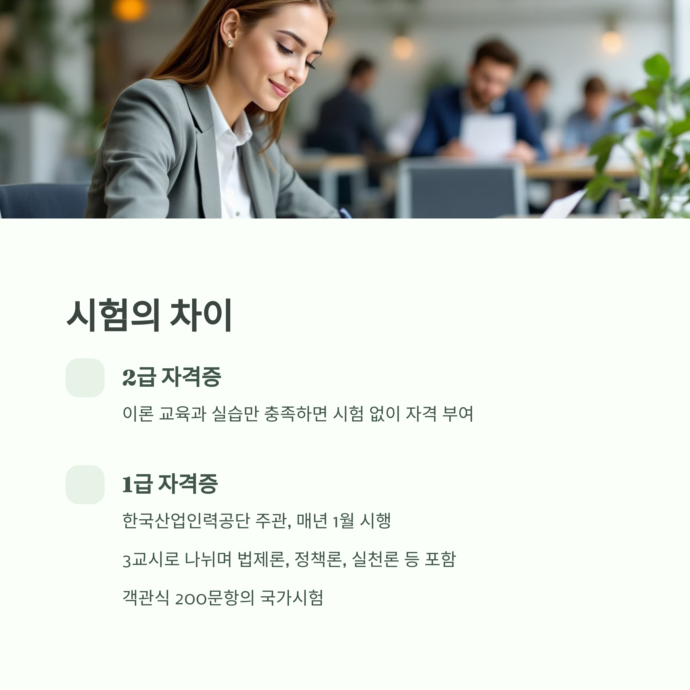 "2급은 진입장벽이 낮지만, 1급은 공무원 시험 수준의 전문 자격시험입니다."