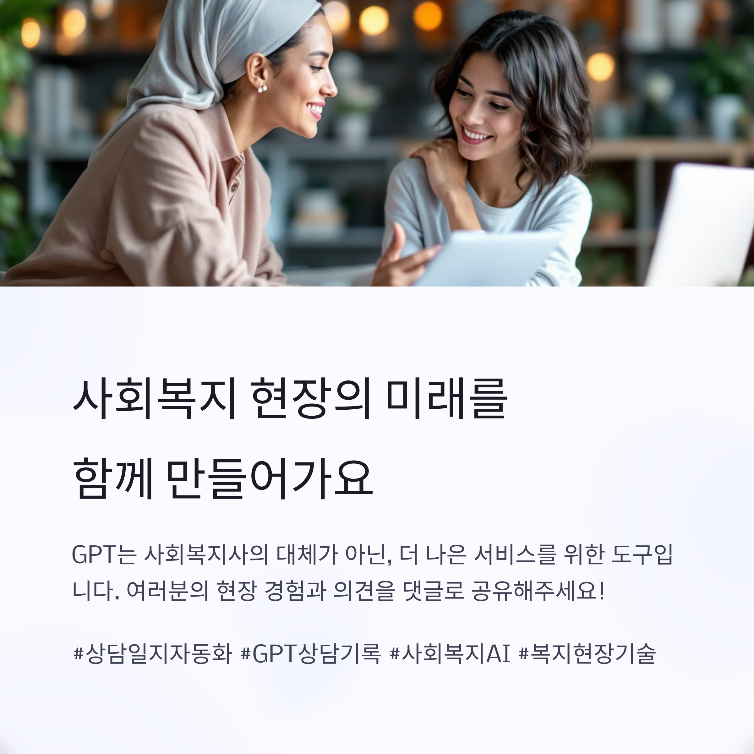GPT는 '기록하는 복지사'에서 '상담에 집중하는 복지사'로의 전환을 가능케 하는 기술입니다