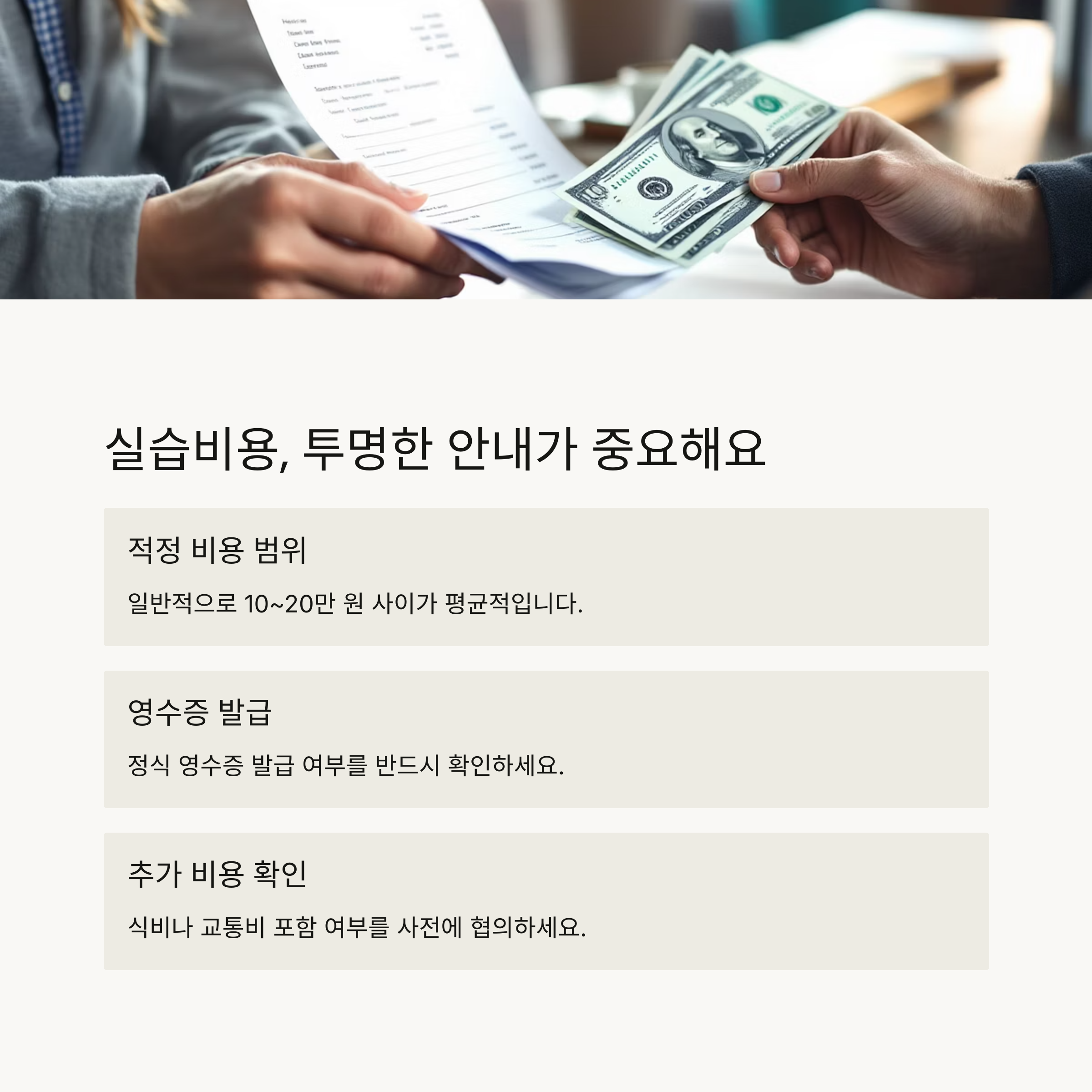 실습비용과 투명한 금액 안내