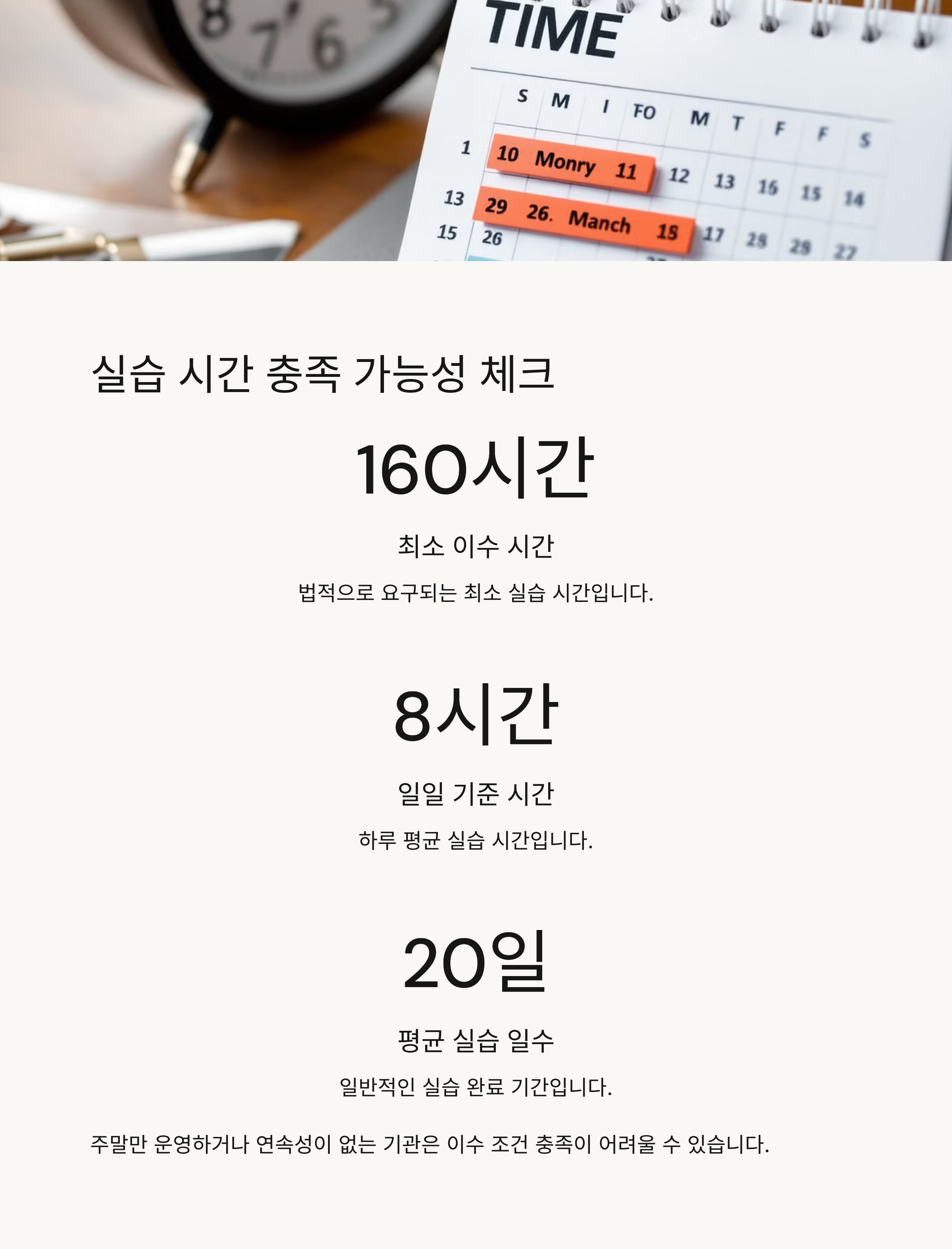 이에 따라 실습기간 내에 모든 시간 충족이 가능한지를 반드시 체크해야 합니다.