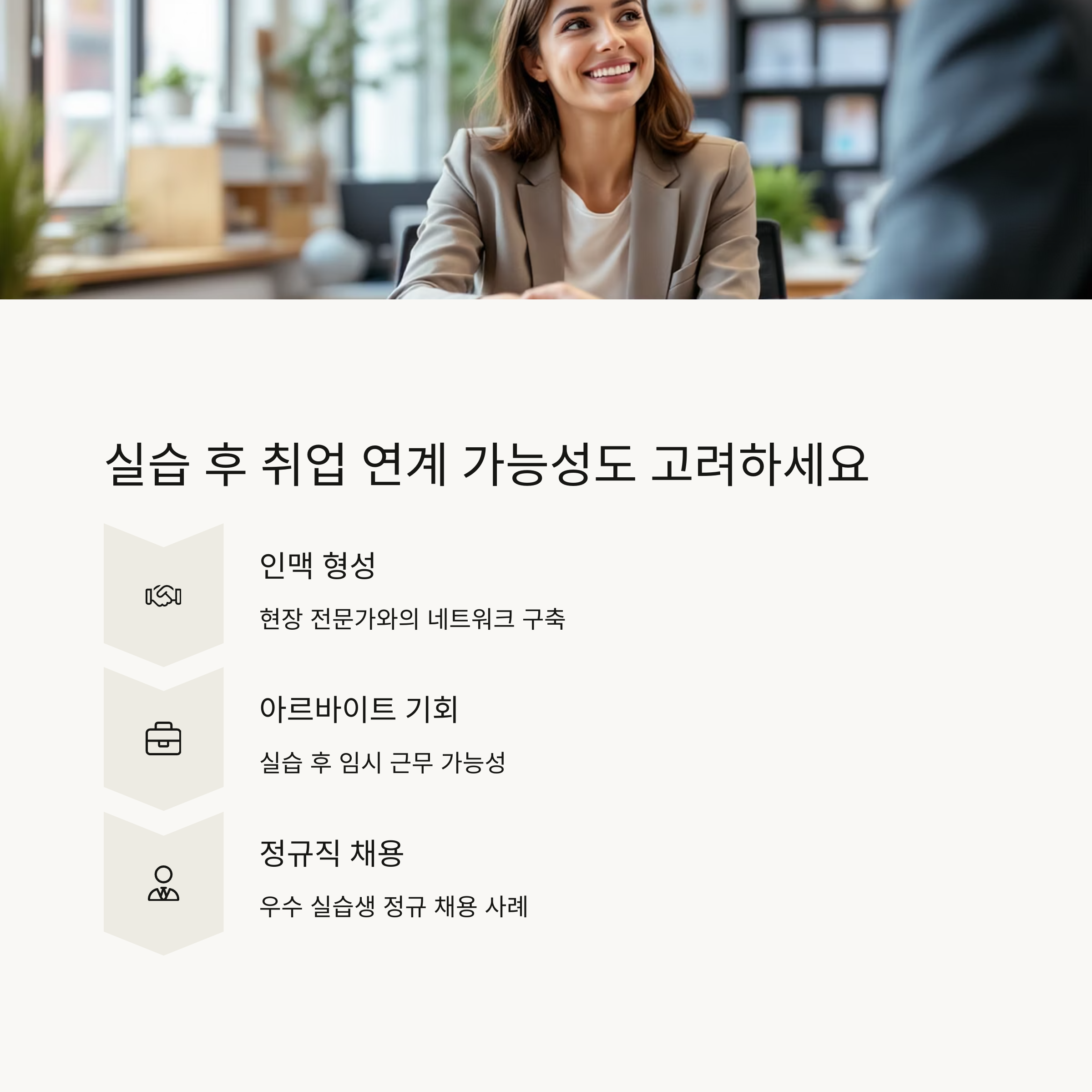 진로를 염두에 두고 있는 분야가 있다면, 장기적 관점에서 실습 연계 가능성도 고려하는 것이 현명합니다.