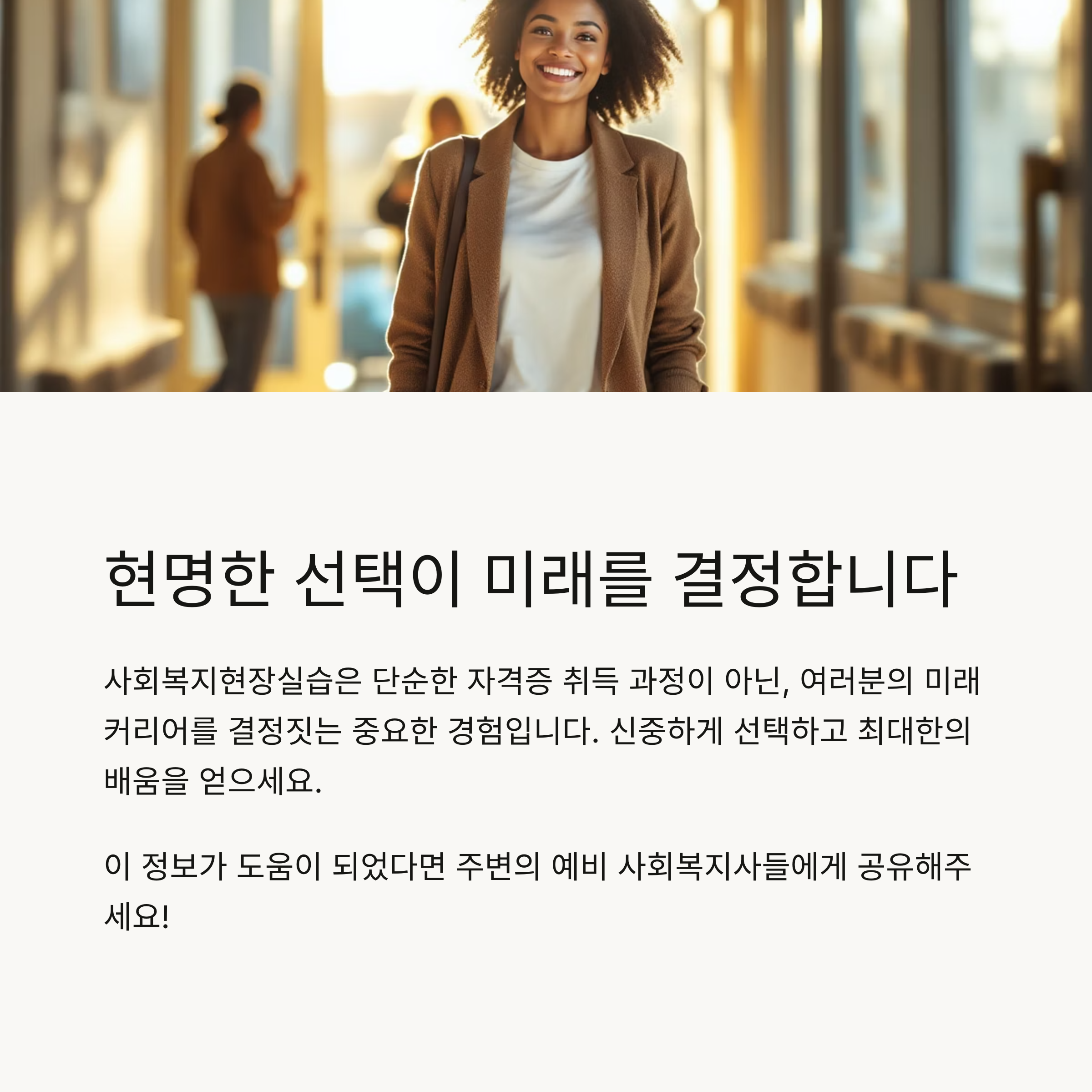 사회복지현장실습은 예비 사회복지사에게 필수적인 과정이며, 현장의 경험은 자격 취득 이상의 가치를 지닙니다.