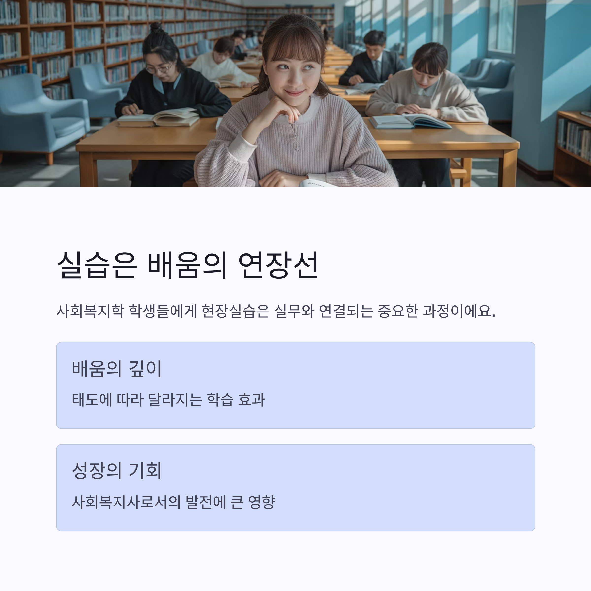사회복지현장실습생에게 요구되는 자세는 거창한 것이 아니에요. 성실함, 배우려는 마음, 존중과 책임 같은 기본적인 태도가 결국 큰 성장을 이끌어요. 실습은 짧은 기간이지만, 이 시간을 어떻게 보내느냐에 따라 사회복지사로서의 길이 달라질 수 있어요.