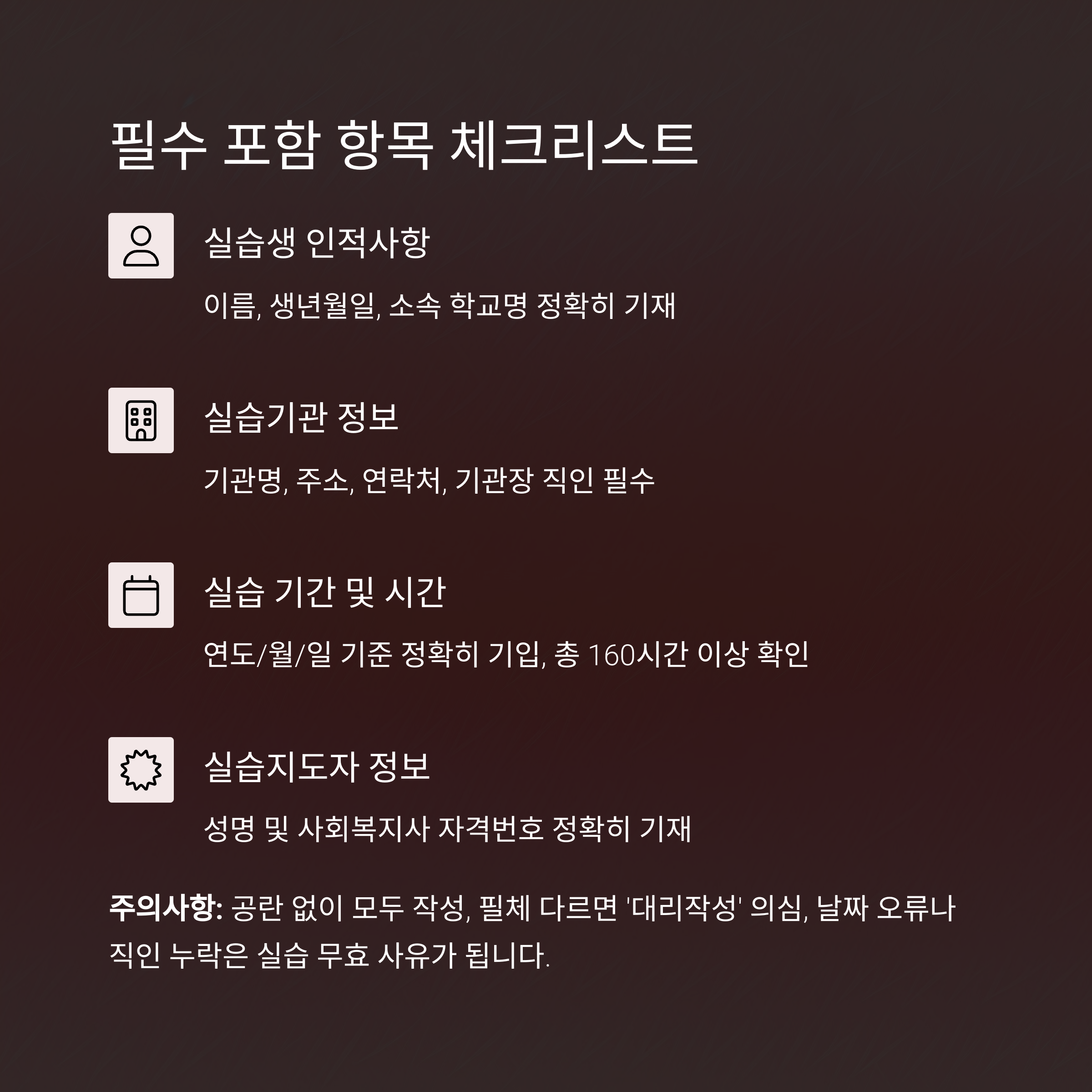 – 날짜 오류, 직인 누락 → 실습 무효 사유