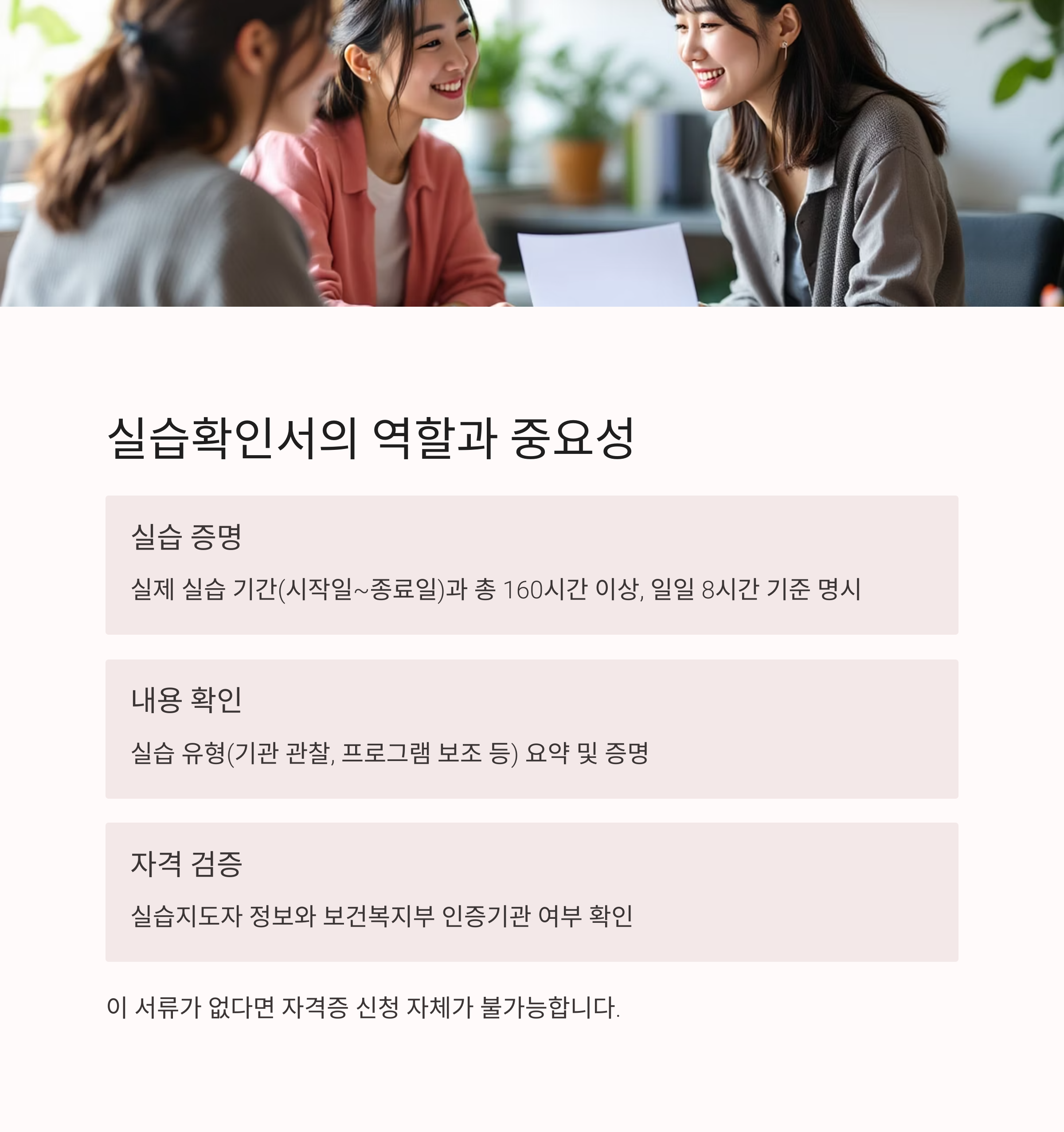 결론: 실습확인서는 ‘이수 증명서’가 아니라 ‘법적 자격 서류’입니다