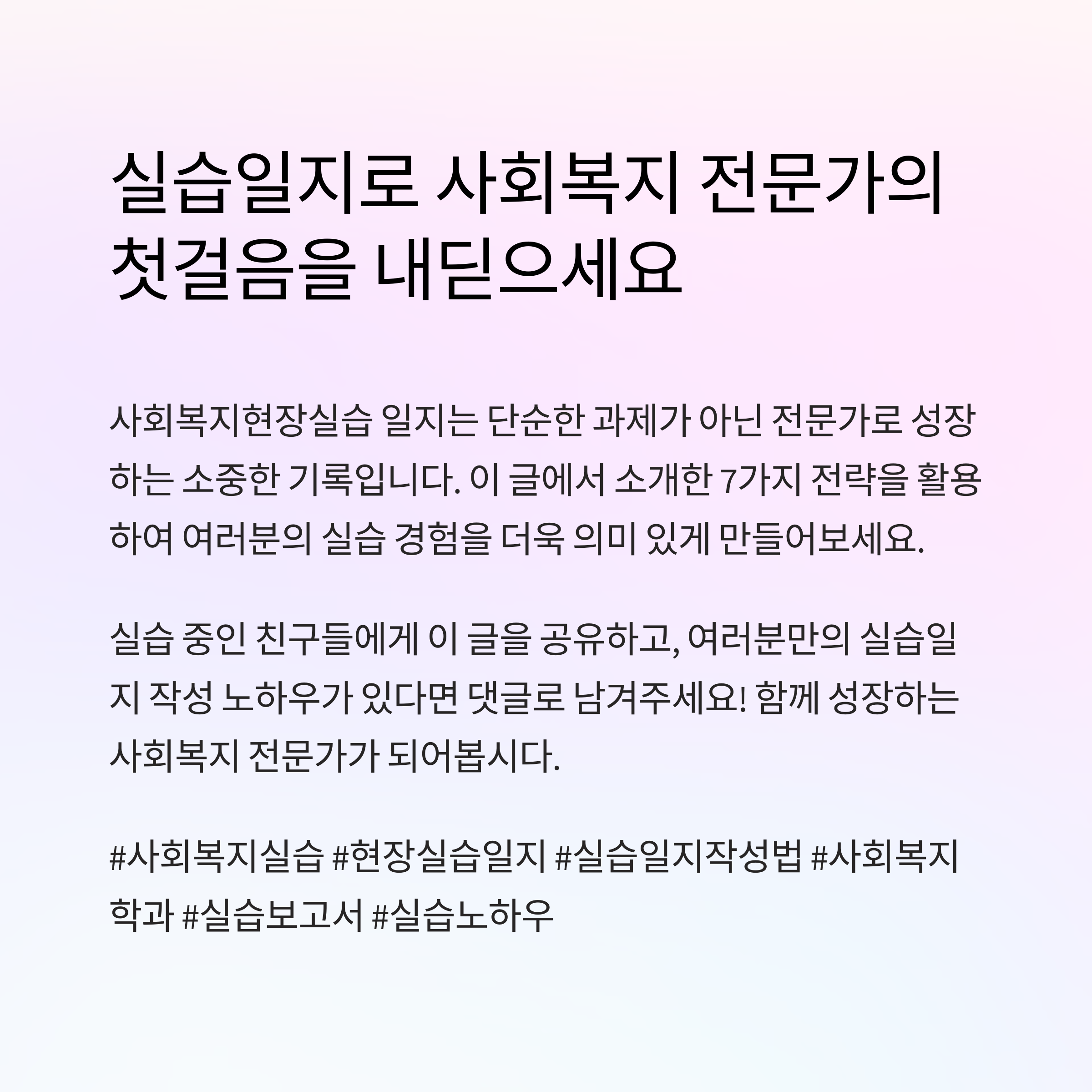 사회복지현장실습은 단순한 업무 체험을 넘어 이론과 실무를 연결하는 중요한 과정입니다.