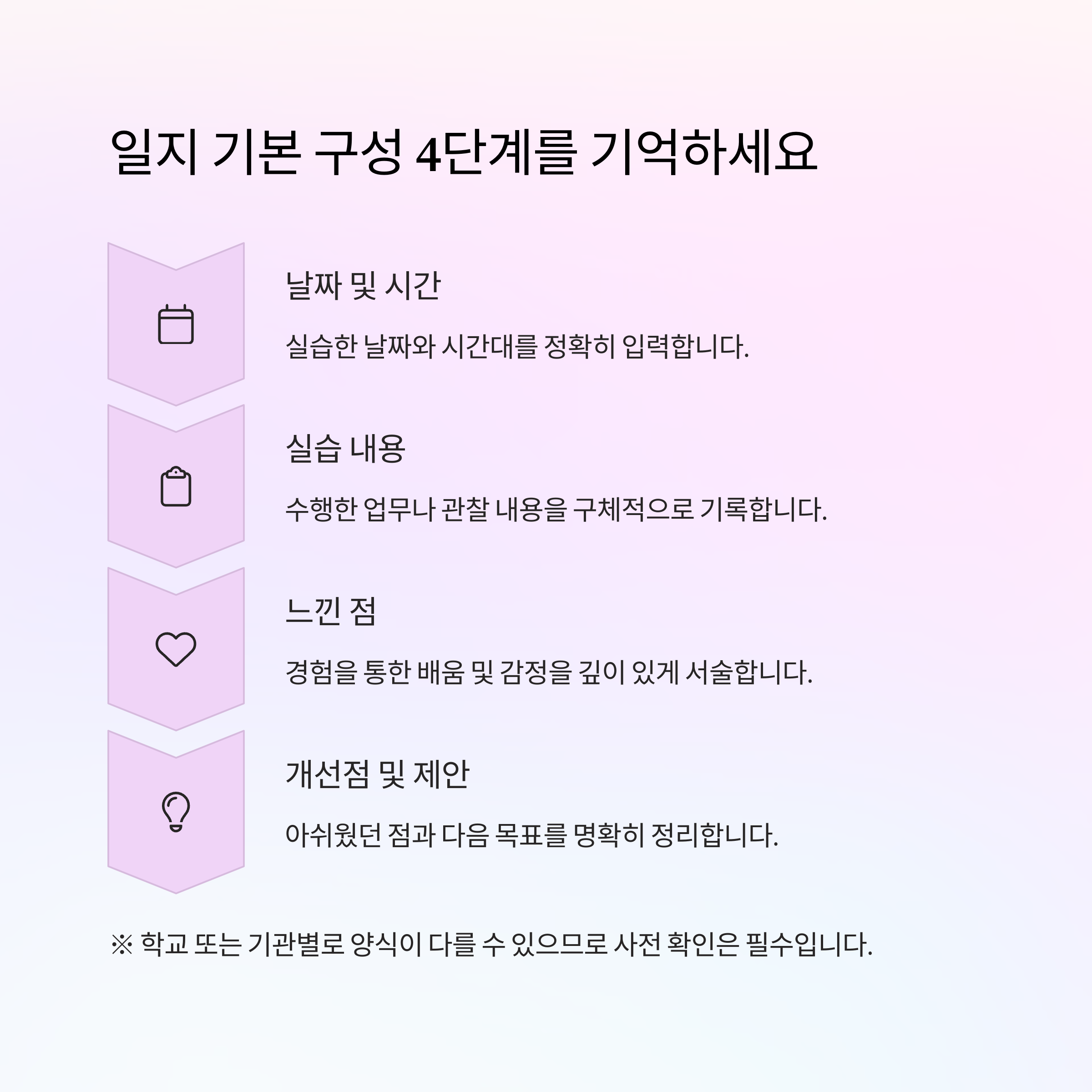 실습 경험을 되돌아보며 스스로의 역량을 점검하는 도구로 활용하세요.