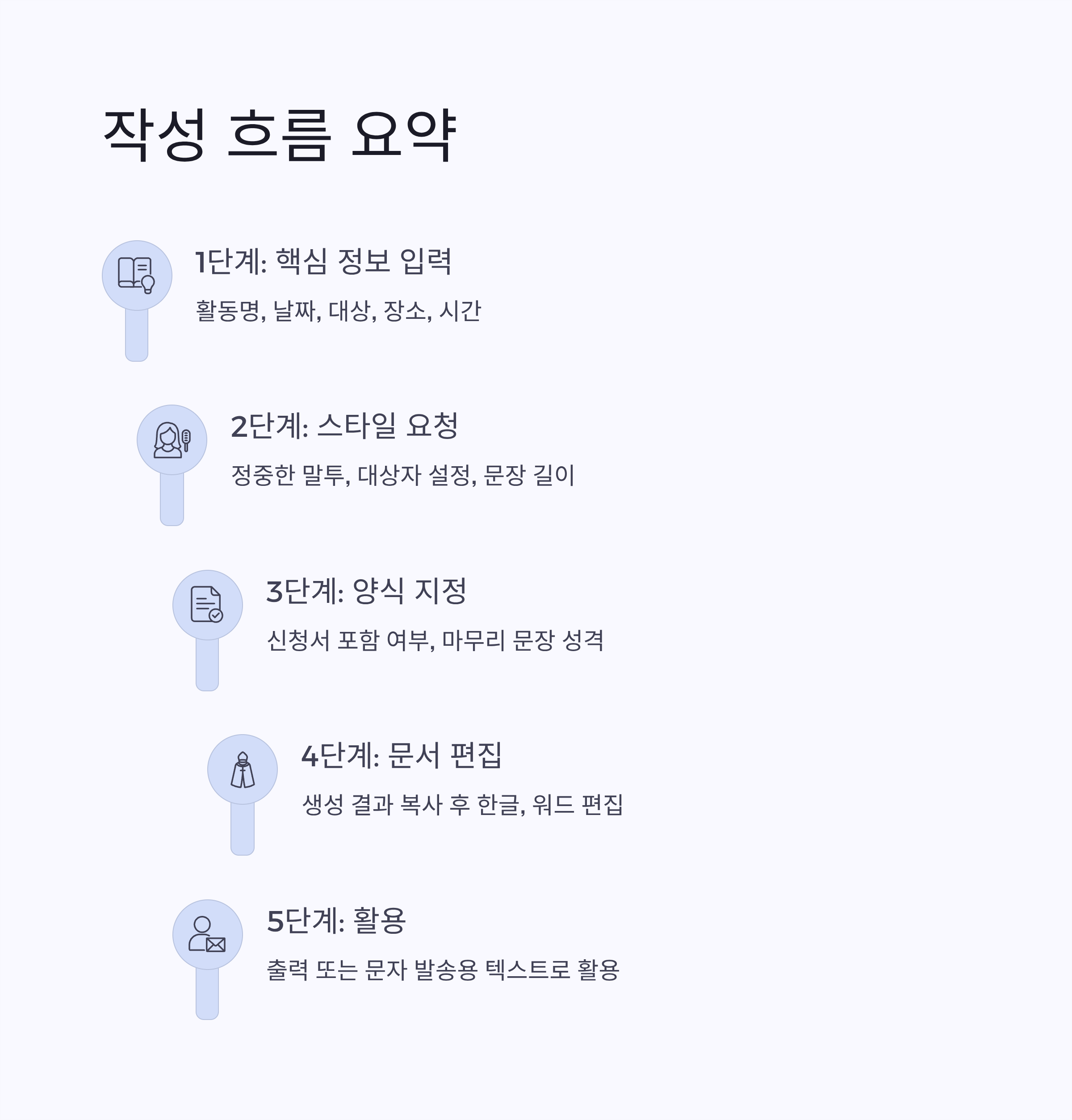 | 3단계 | 신청서 양식 포함 여부, 마무리 문장 성격 지정 요청 |