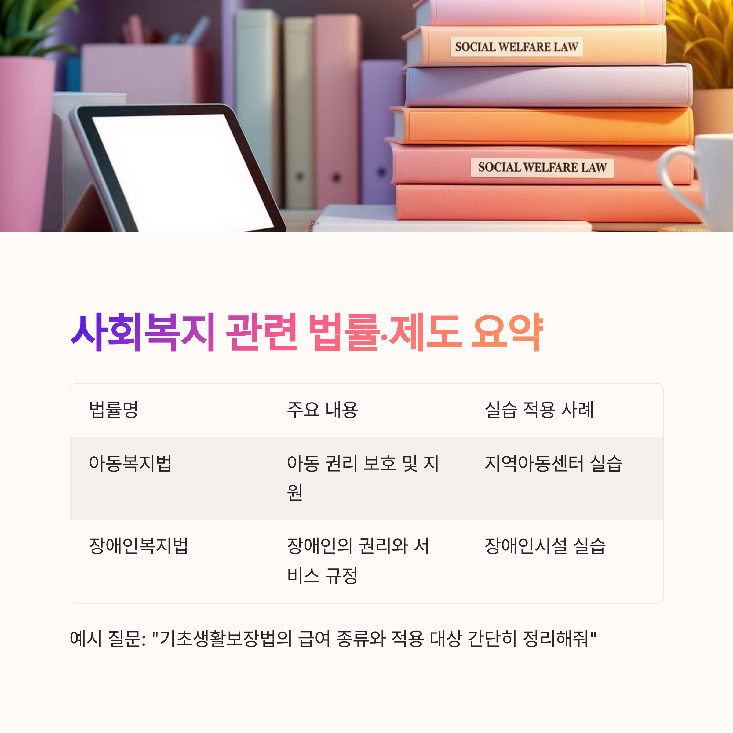 GPT는 관련 복지법의 내용을 쉽게 풀어 요약하고,