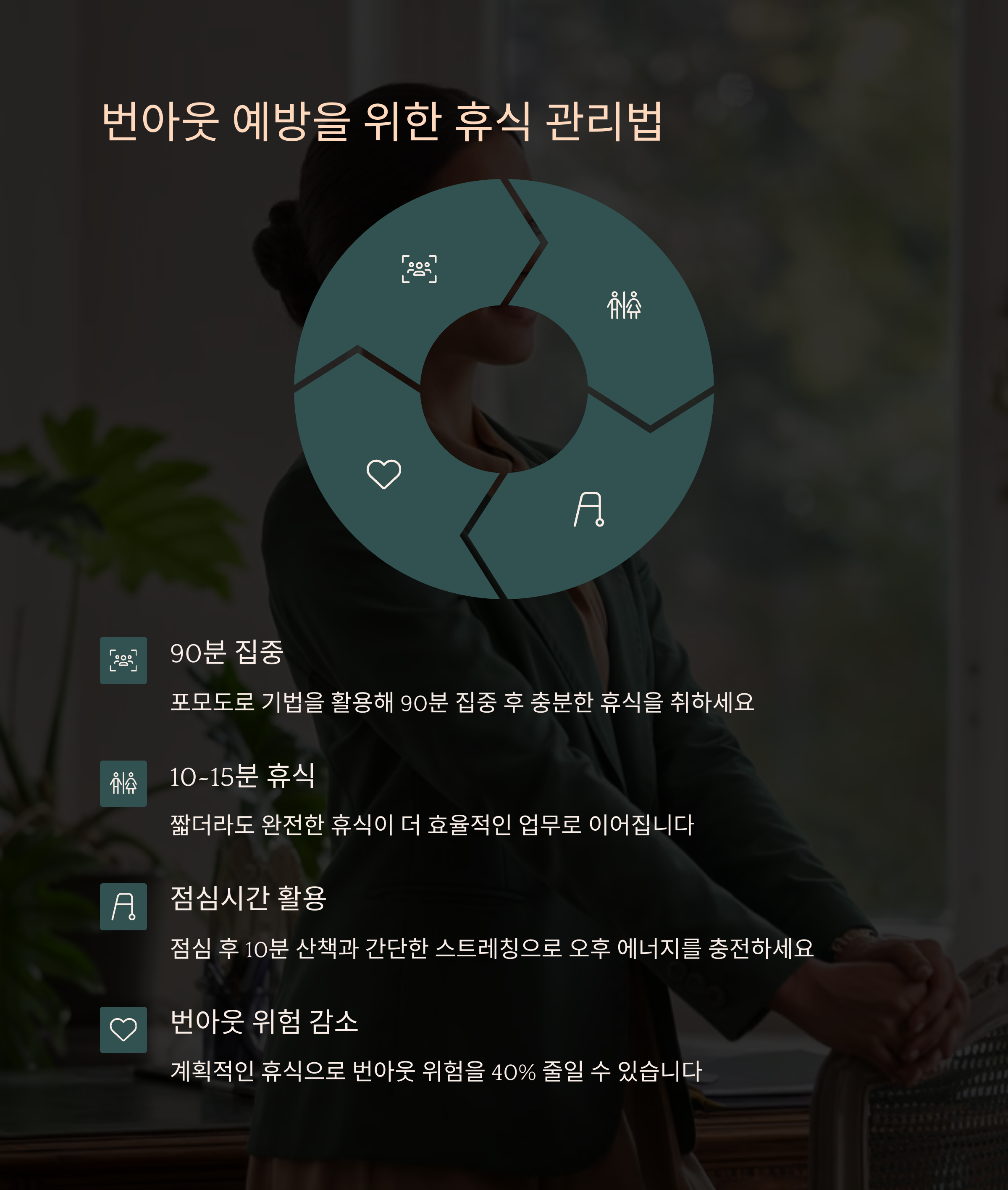 짧게라도 휴식 시간을 꼭 챙기고, 물 한잔 마시며 리프레시하세요.
