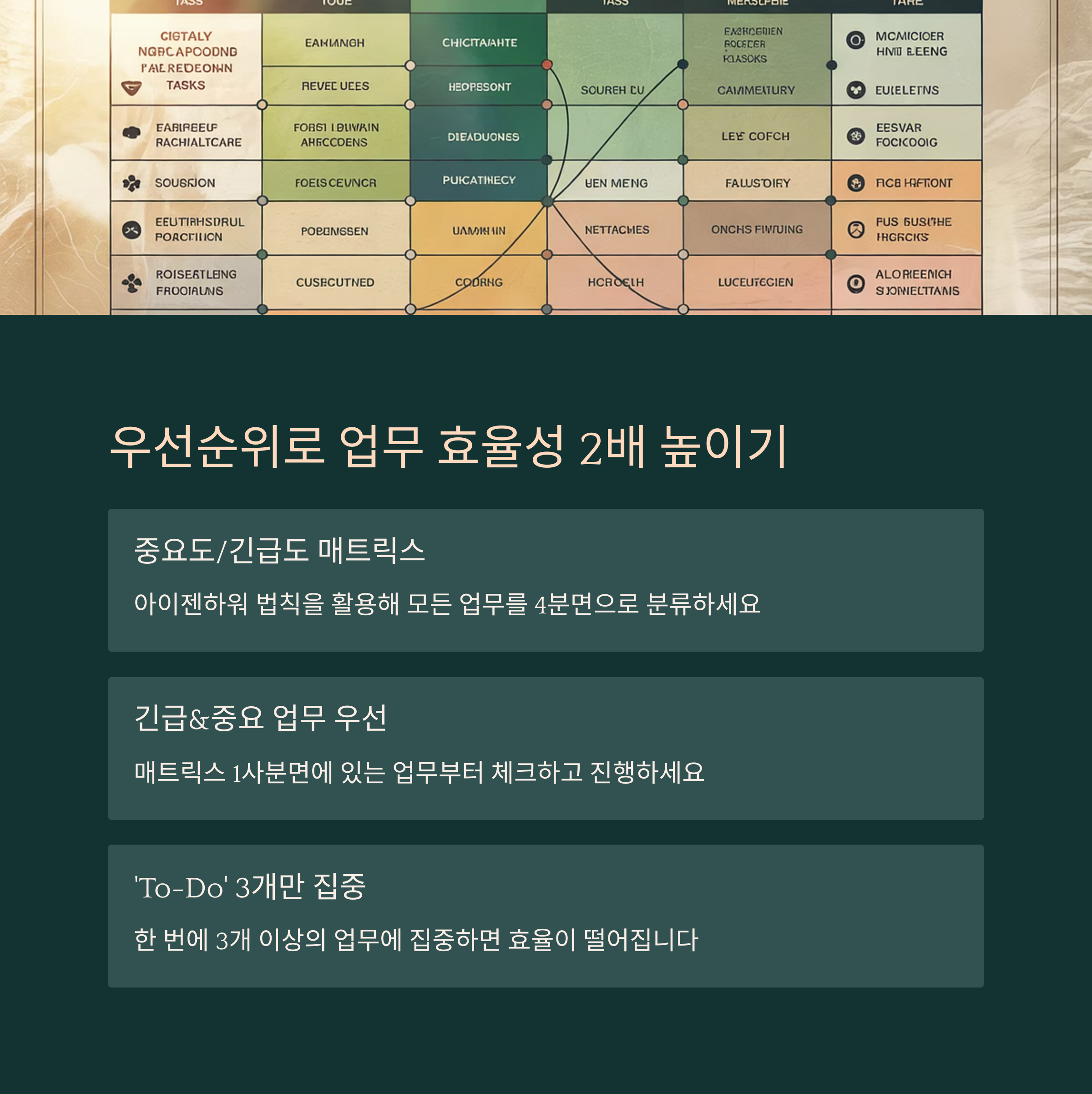급한 일과 중요한 일을 구분하고, 반드시 처리해야 할 것부터 시작하세요.