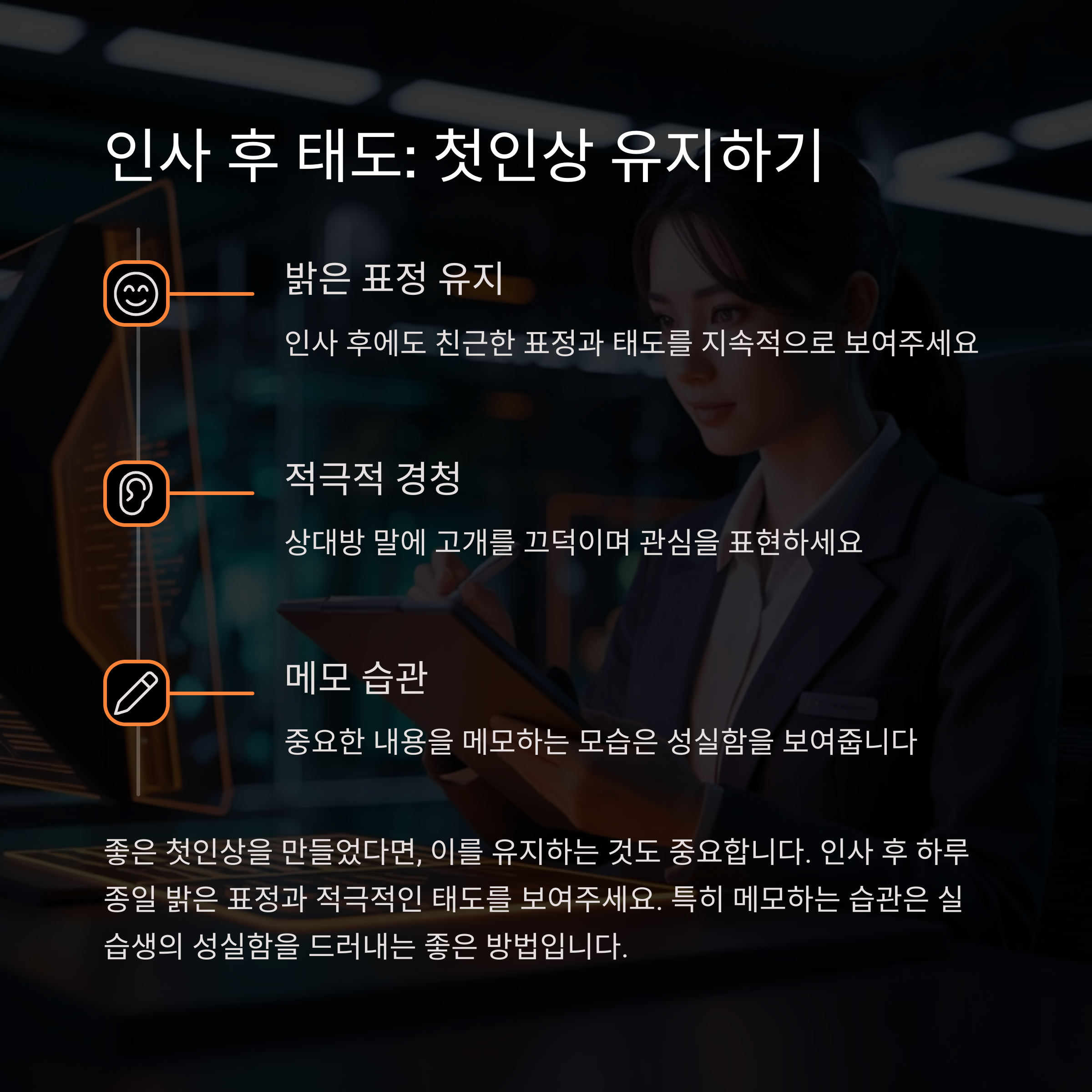 인사 후 태도 관리 - 첫날 인상 유지하기