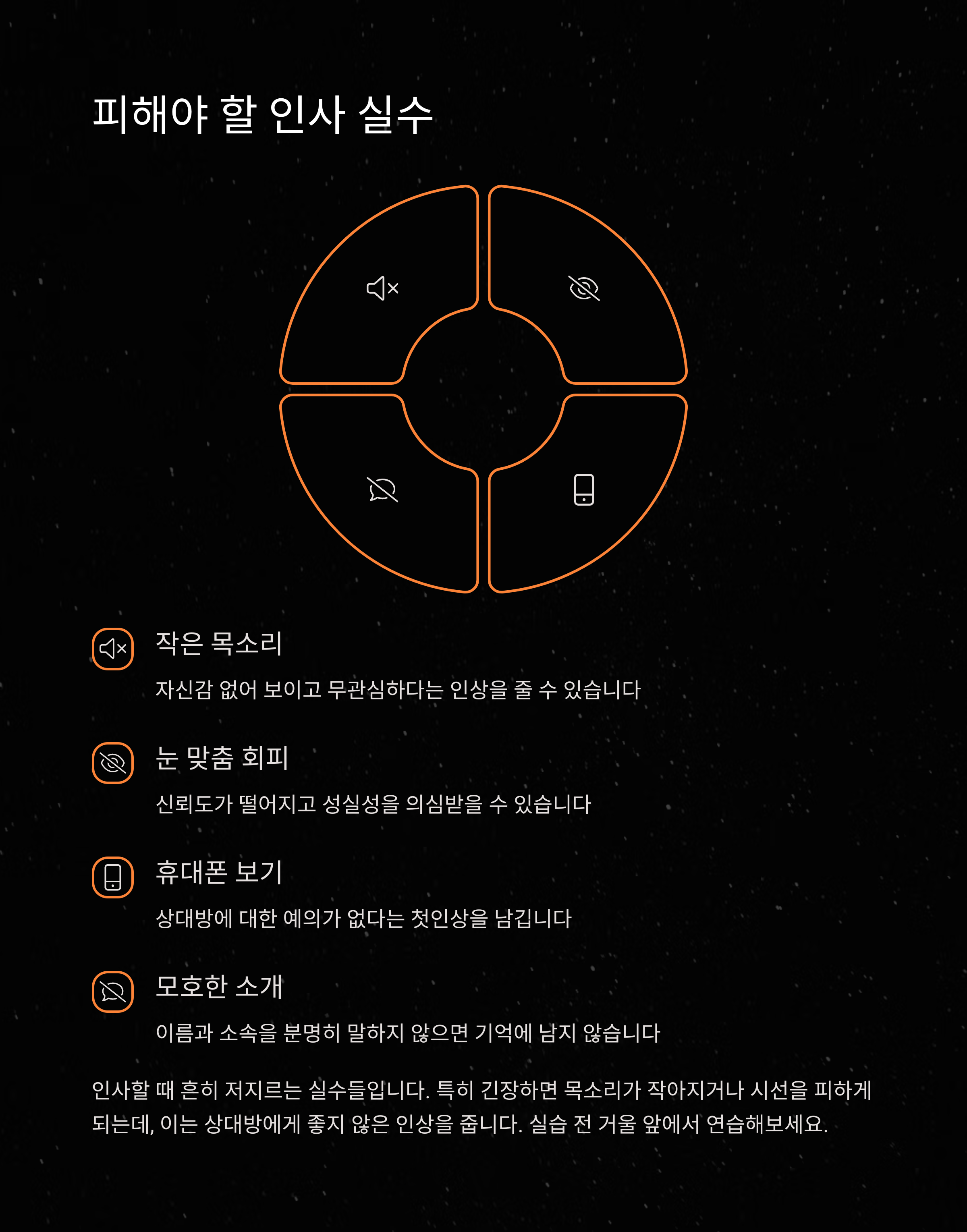 여러분의 태도와 이미지를 결정짓는 가장 중요한 순간이죠.