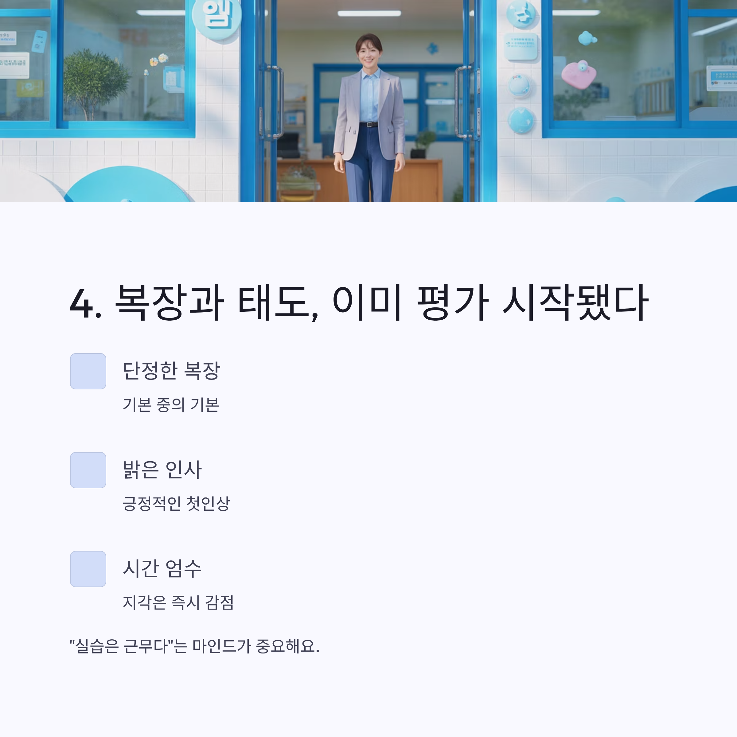 이 단계에서 실습생에 대한 첫인상이 결정되기 때문이죠.