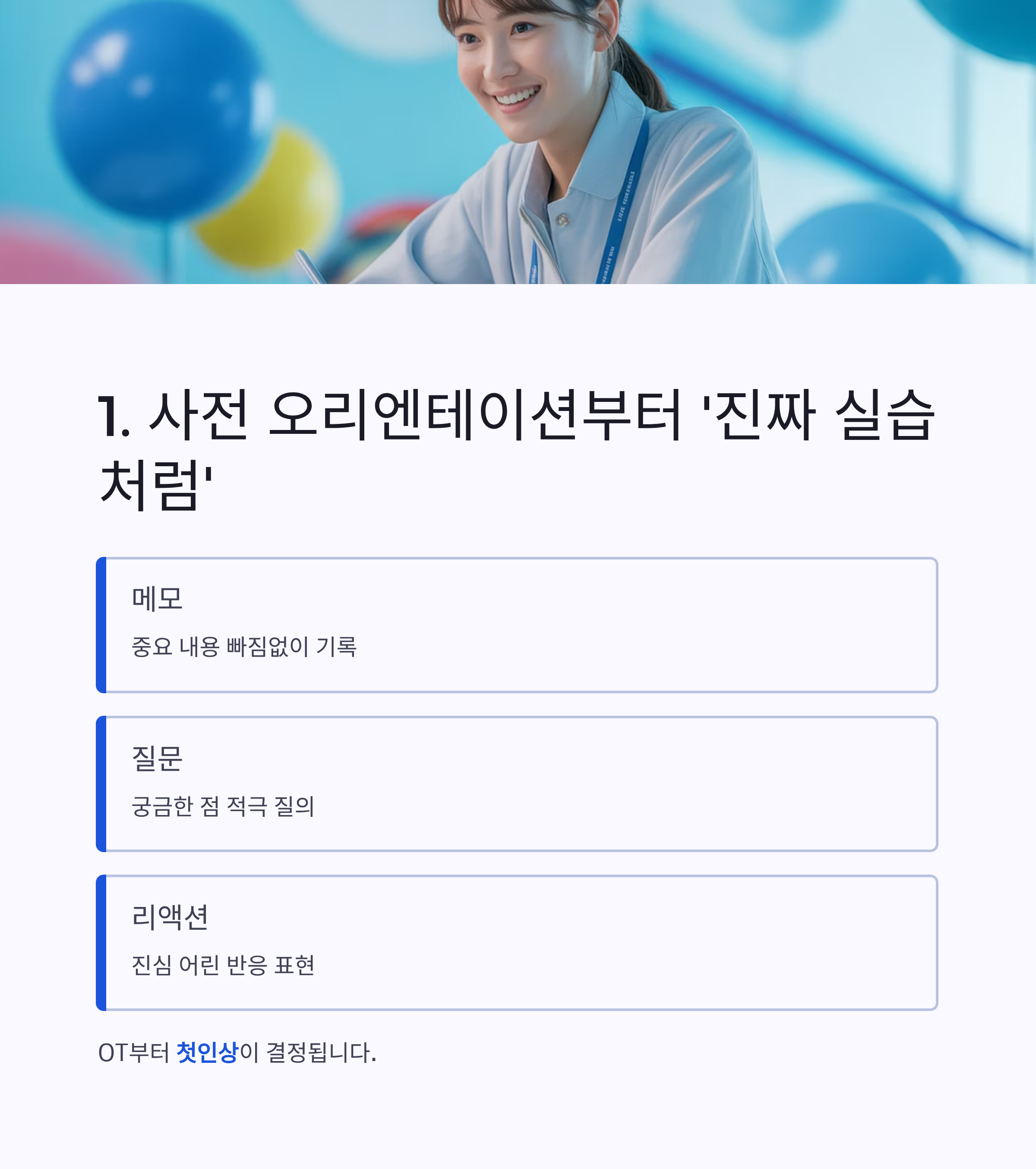 실습기관에서 진행하는 OT, 그냥 듣고 끝내는 경우 많죠.