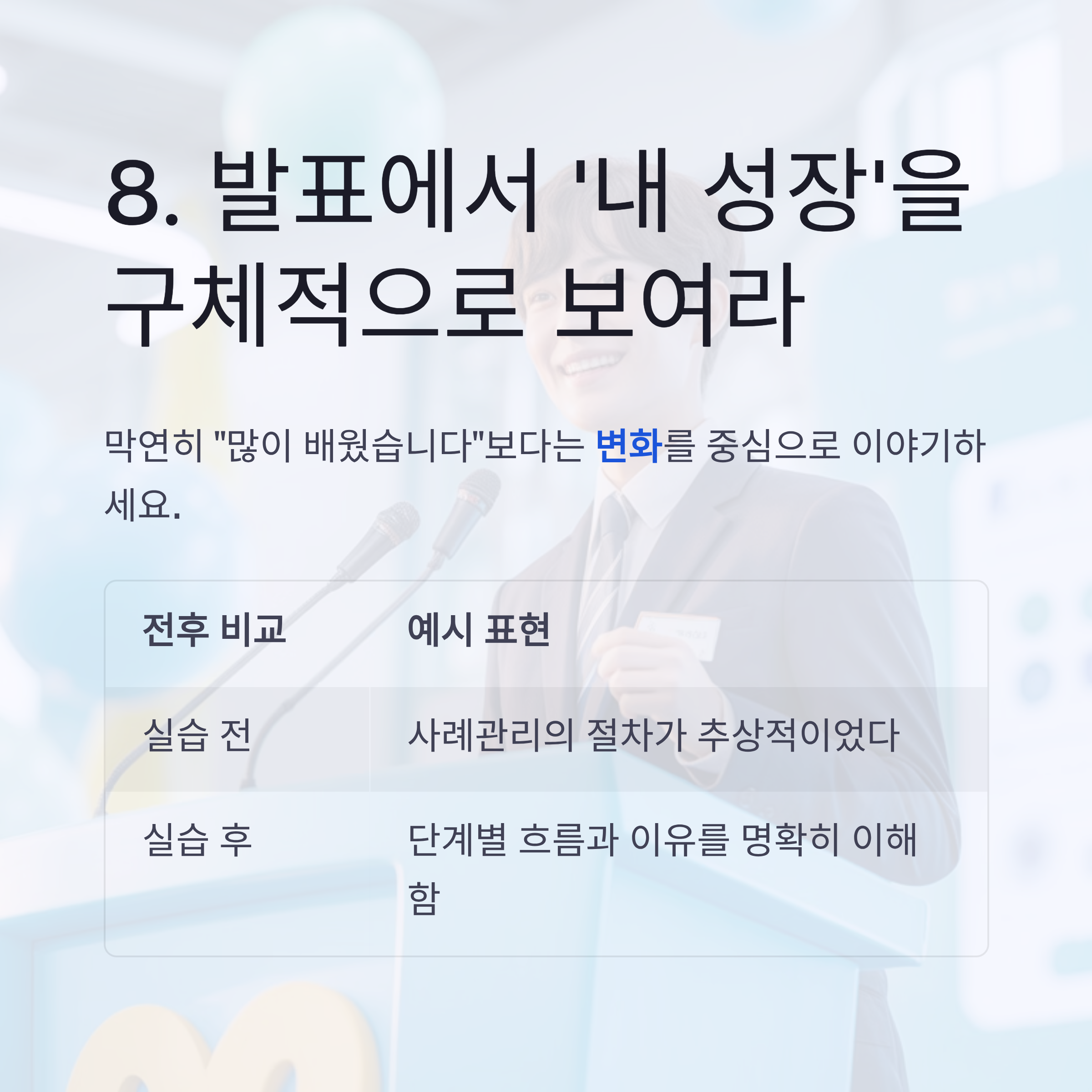 | 8 | 성장 중심 발표 준비 |