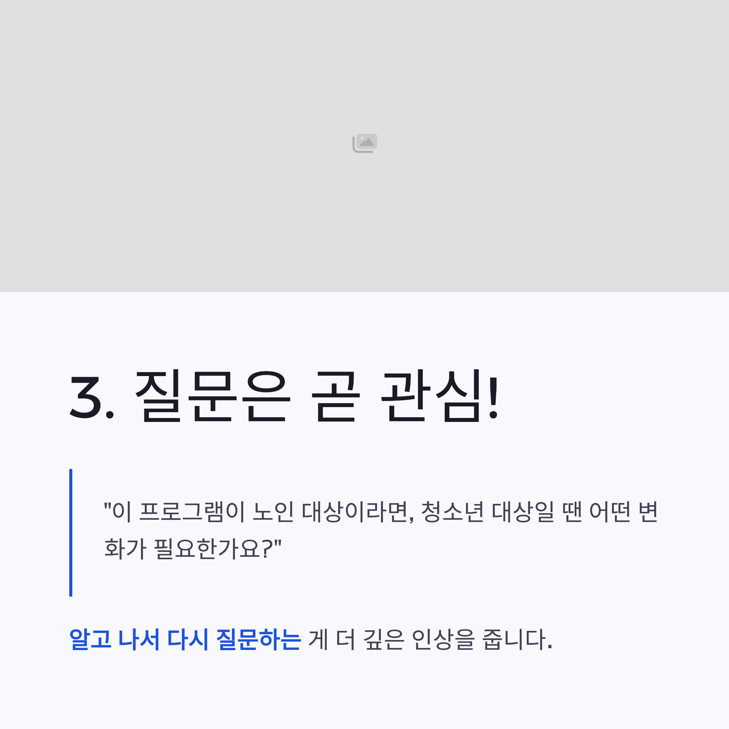 “이 프로그램이 노인 대상이라면, 청소년 대상일 땐 어떤 변화가 필요한가요?”