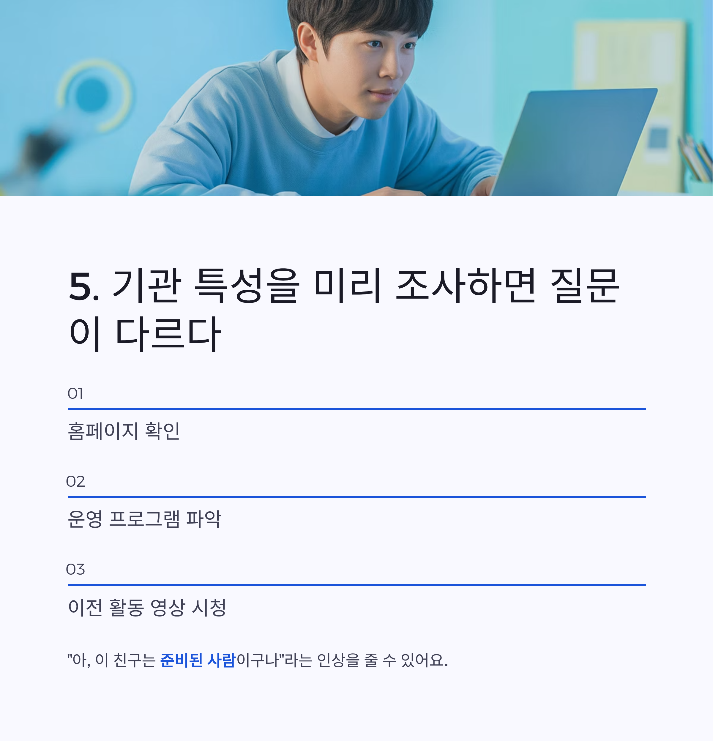 “아, 이 친구는 준비된 사람이구나”라는 인상을 줄 수 있어요.
