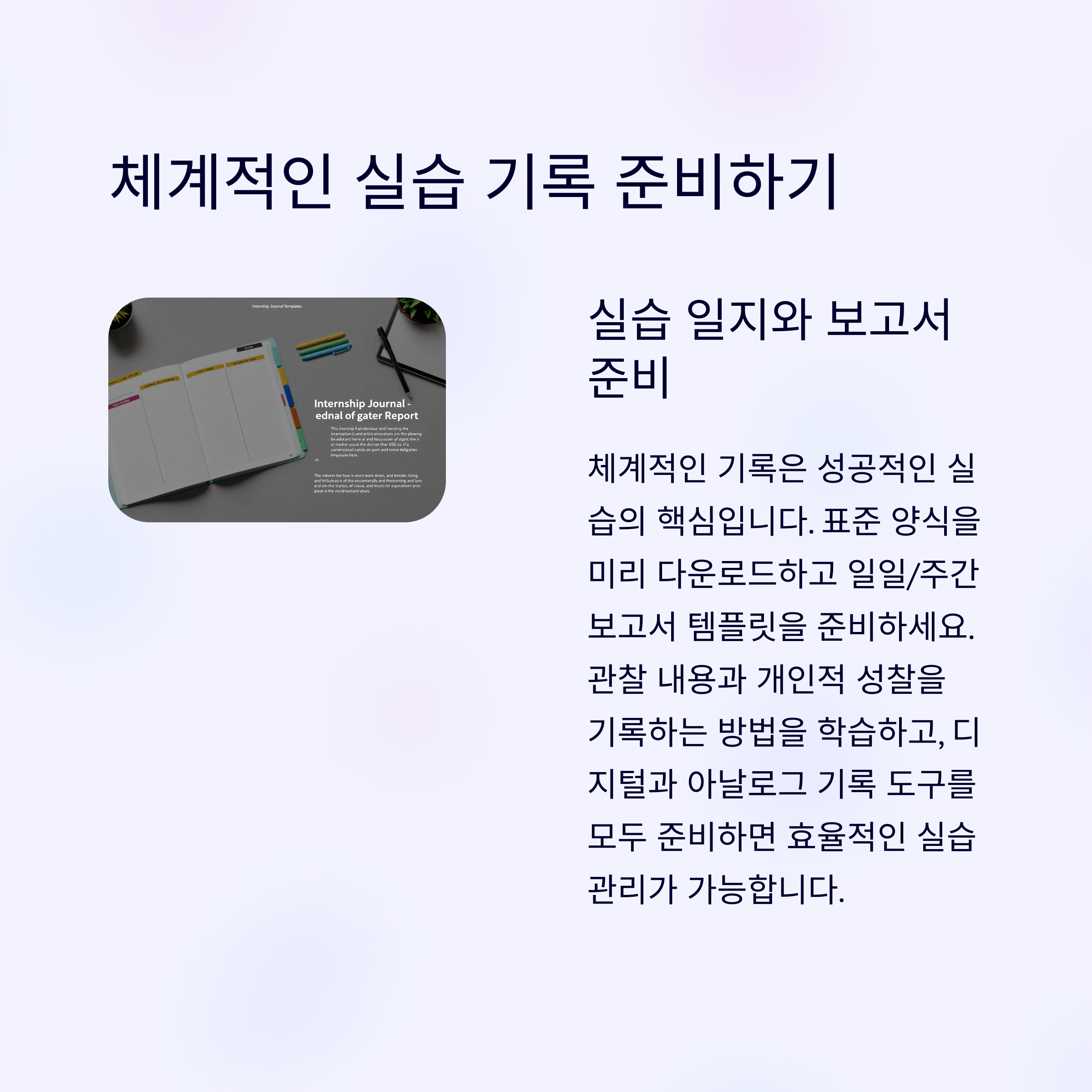 | 실습일지 작성 | 매일 작성, 시간대별 활동 상세 기록 필요. |