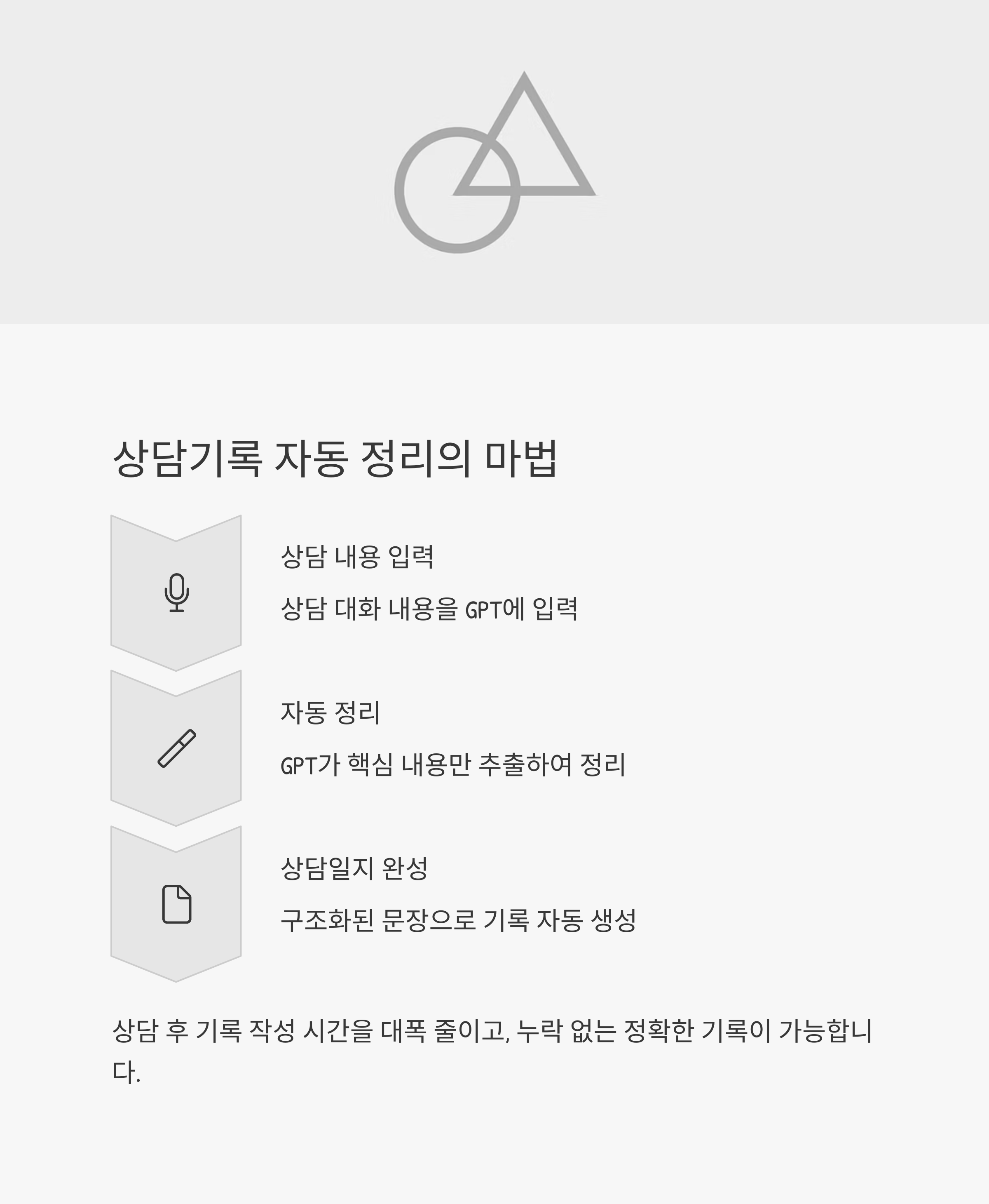 표현과 정리에 대한 부담을 줄여 상담자의 본질적 역량에 집중할 수 있도록 도와줍니다.