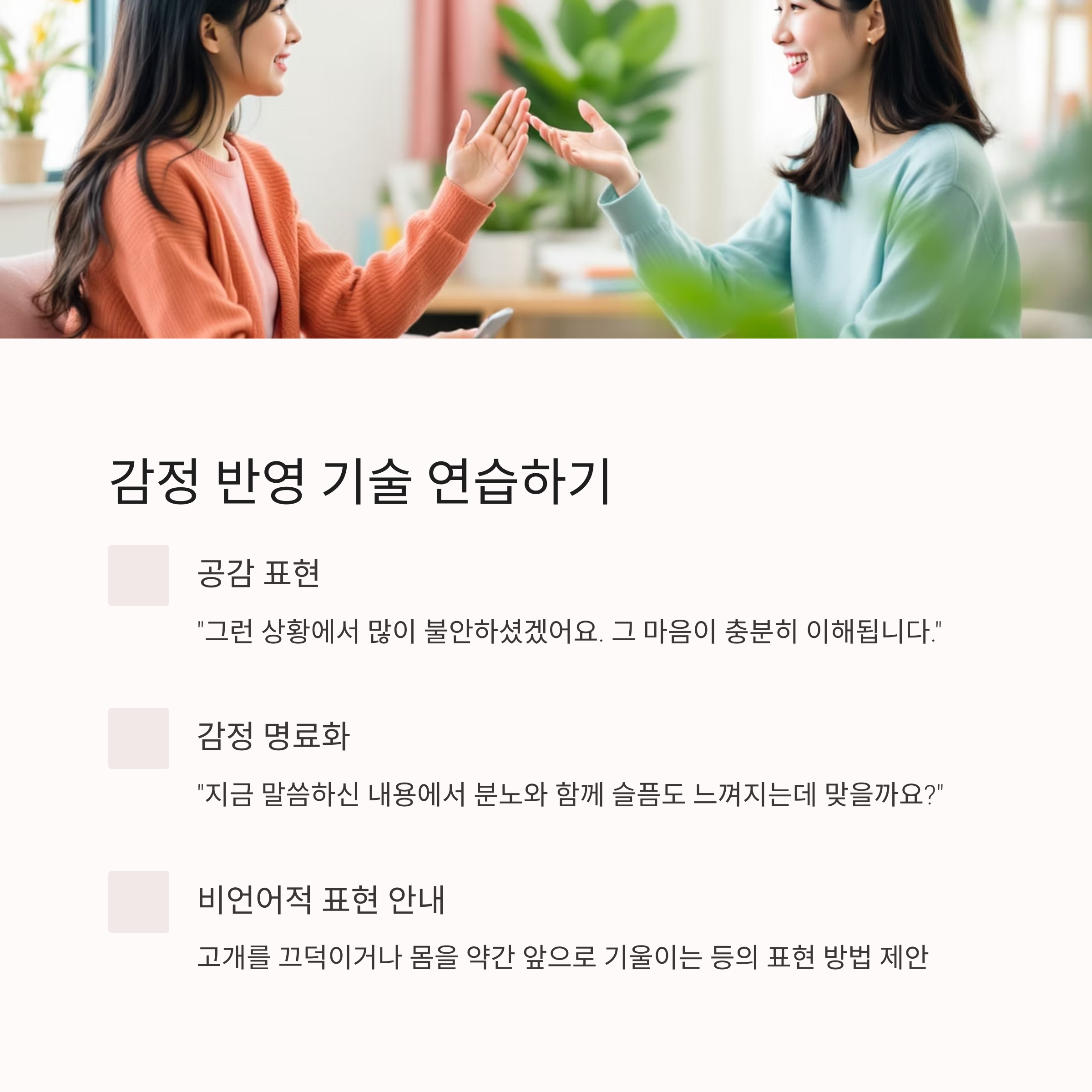 초보 상담자가 실전에서 연습하기 어려운 기술도 연습 가능합니다.