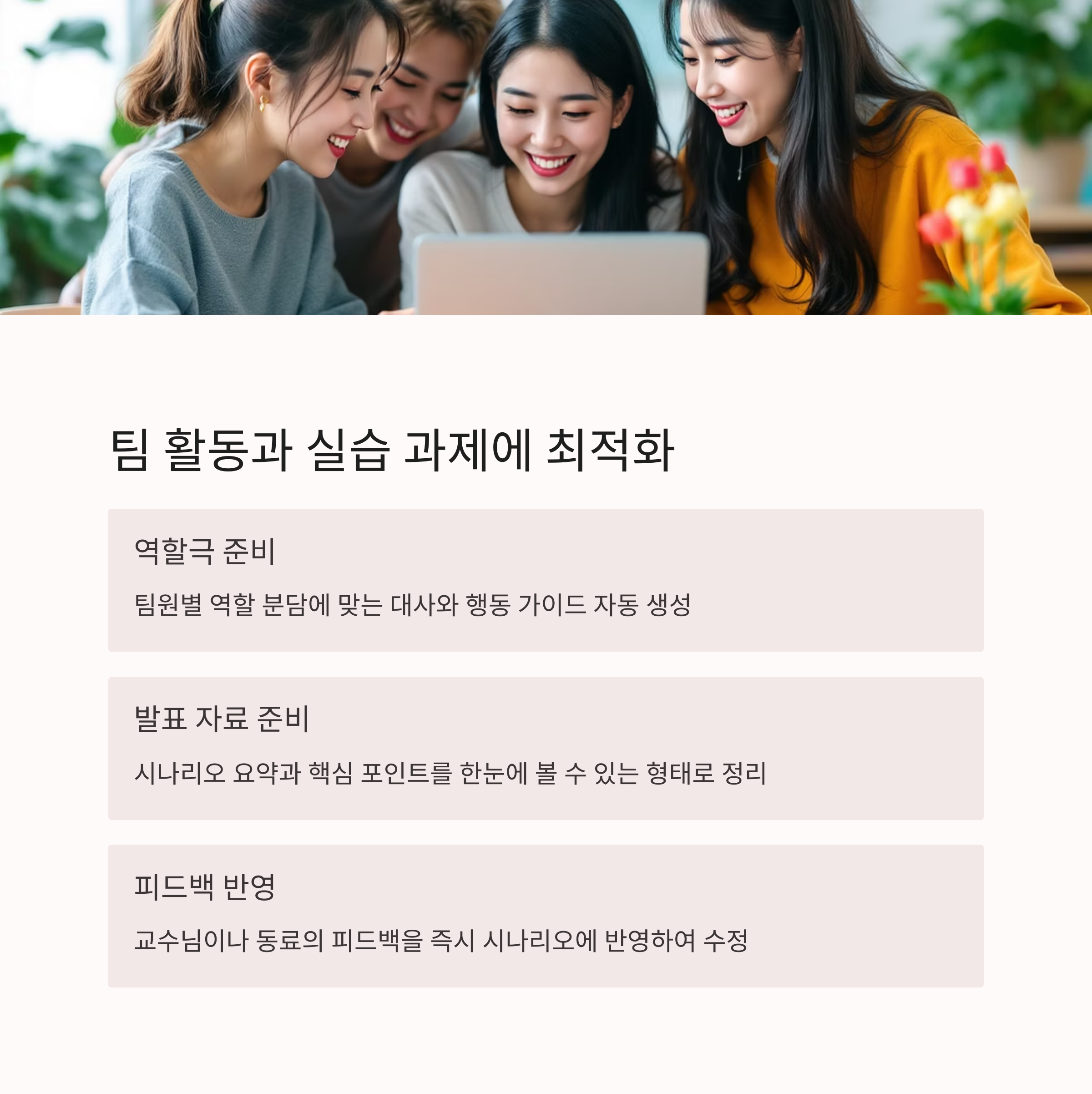GPT는 주제 선택부터 역할 분담, 대사 작성까지 도와줍니다.