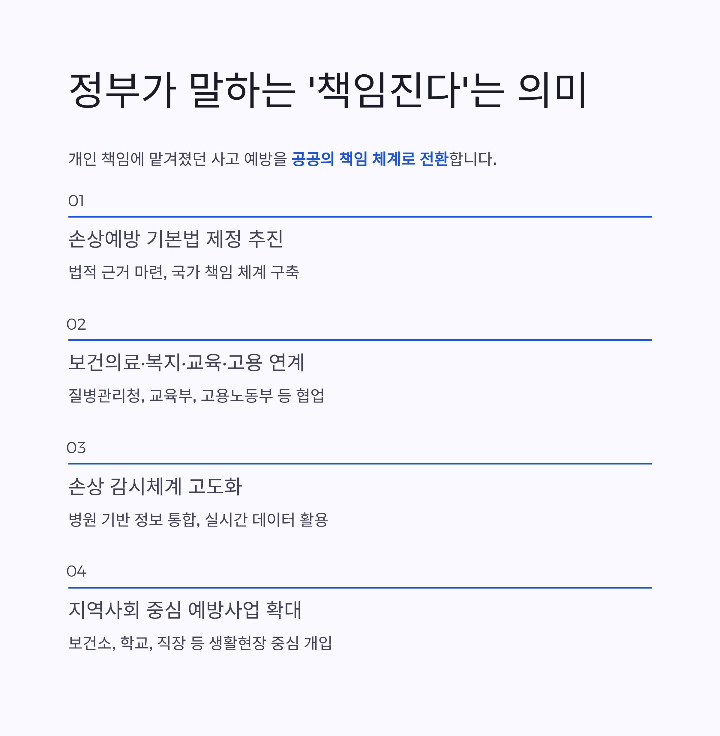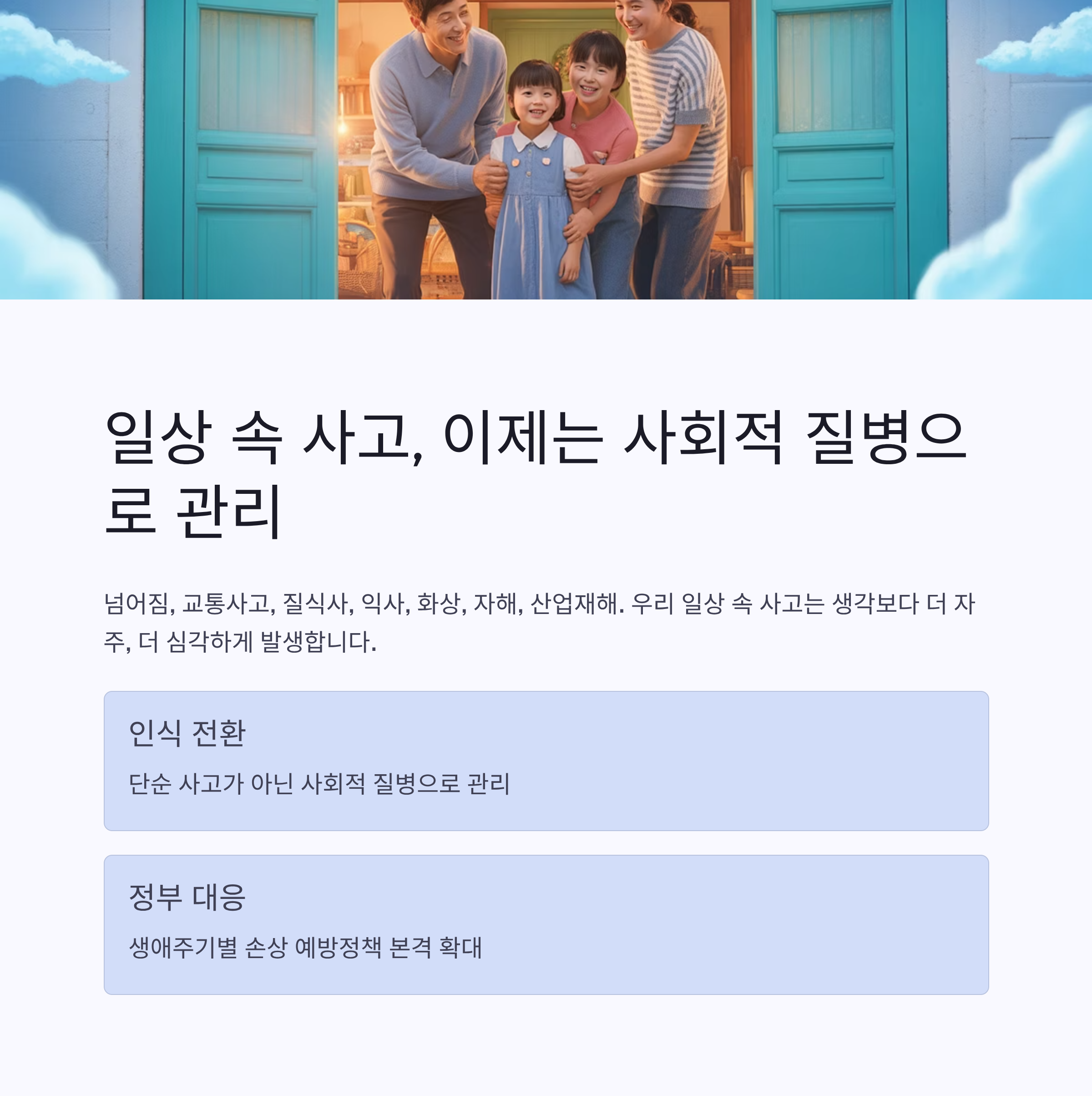 정부는 ‘개인 책임’에 맡겨졌던 사고 예방을 공공의 책임 체계로 전환하고 있습니다.