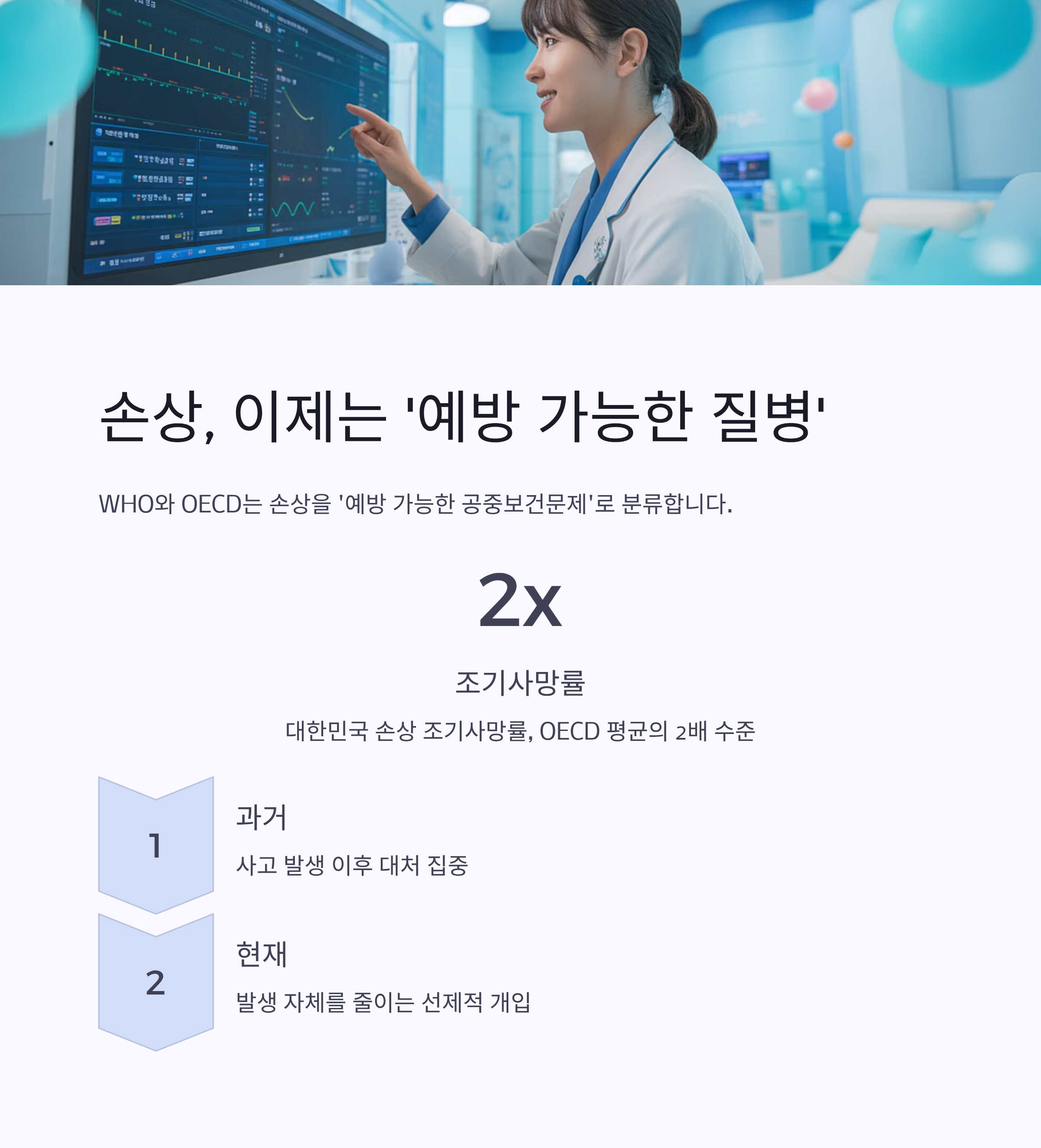 특히 대한민국은 손상으로 인한 조기사망률이 OECD 평균의 2배 수준.