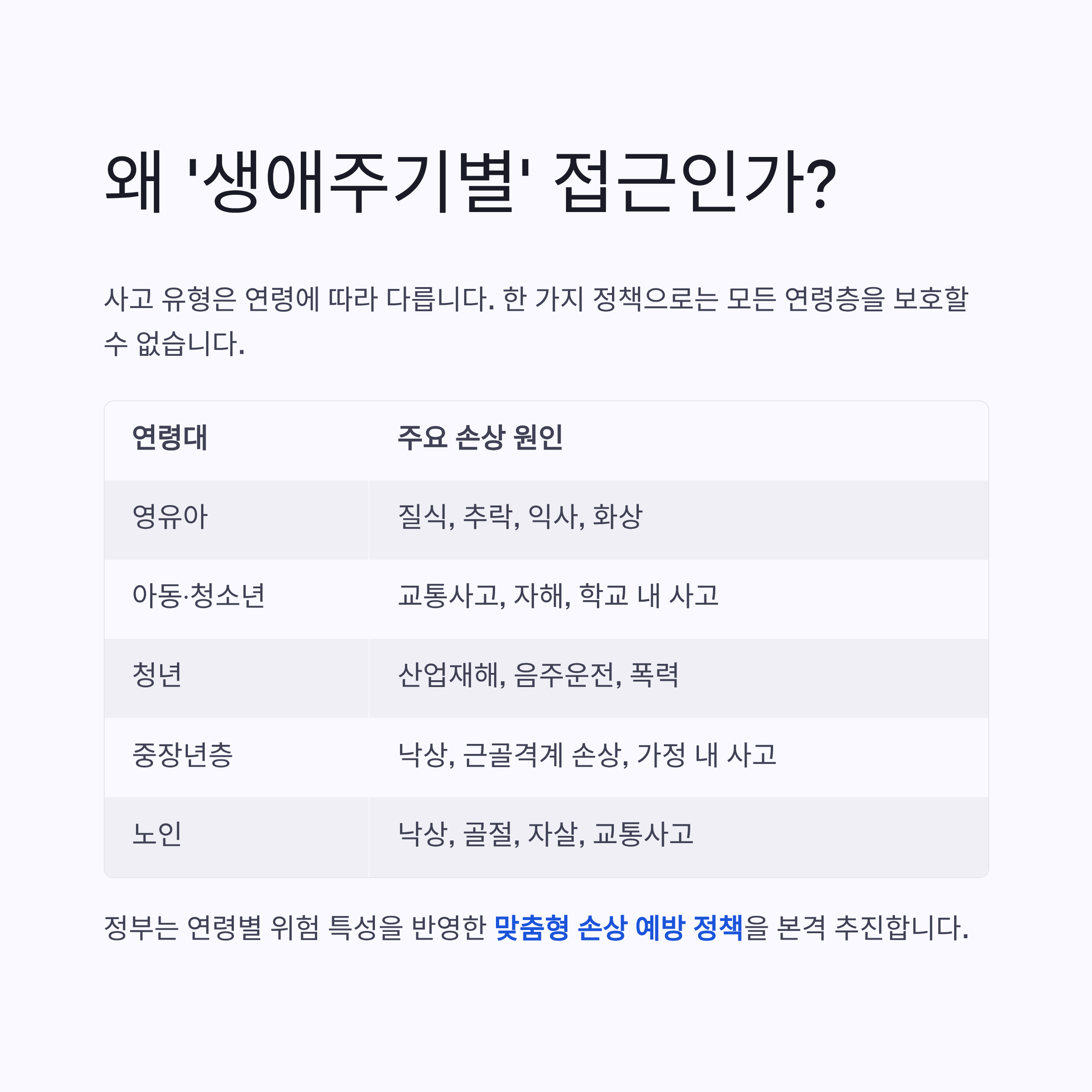 연령별 맞춤형 손상 예방정책, 이제는 선택 아닌 필수입니다