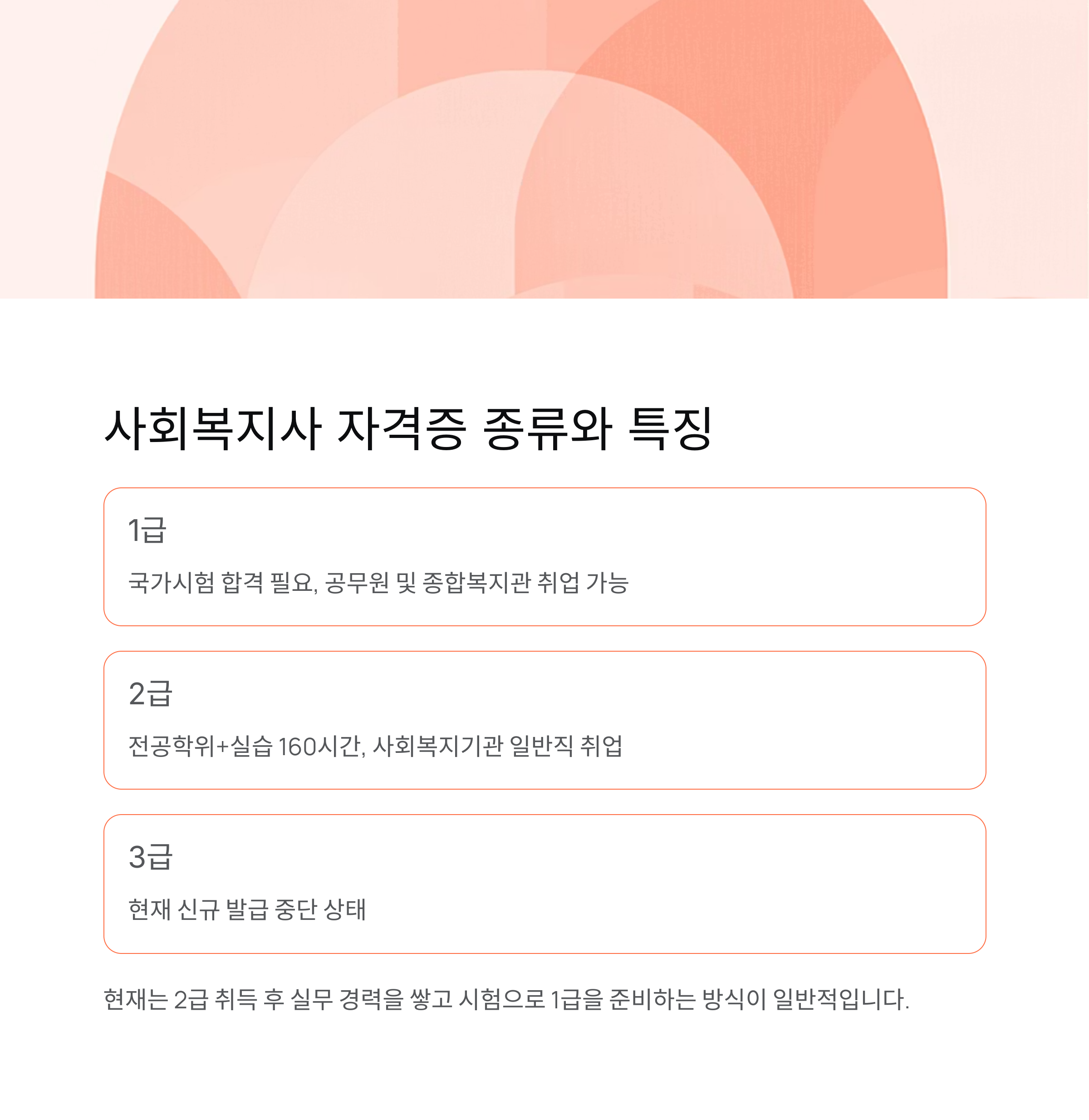 사회복지사는 크게 세 가지 자격 등급으로 나뉩니다