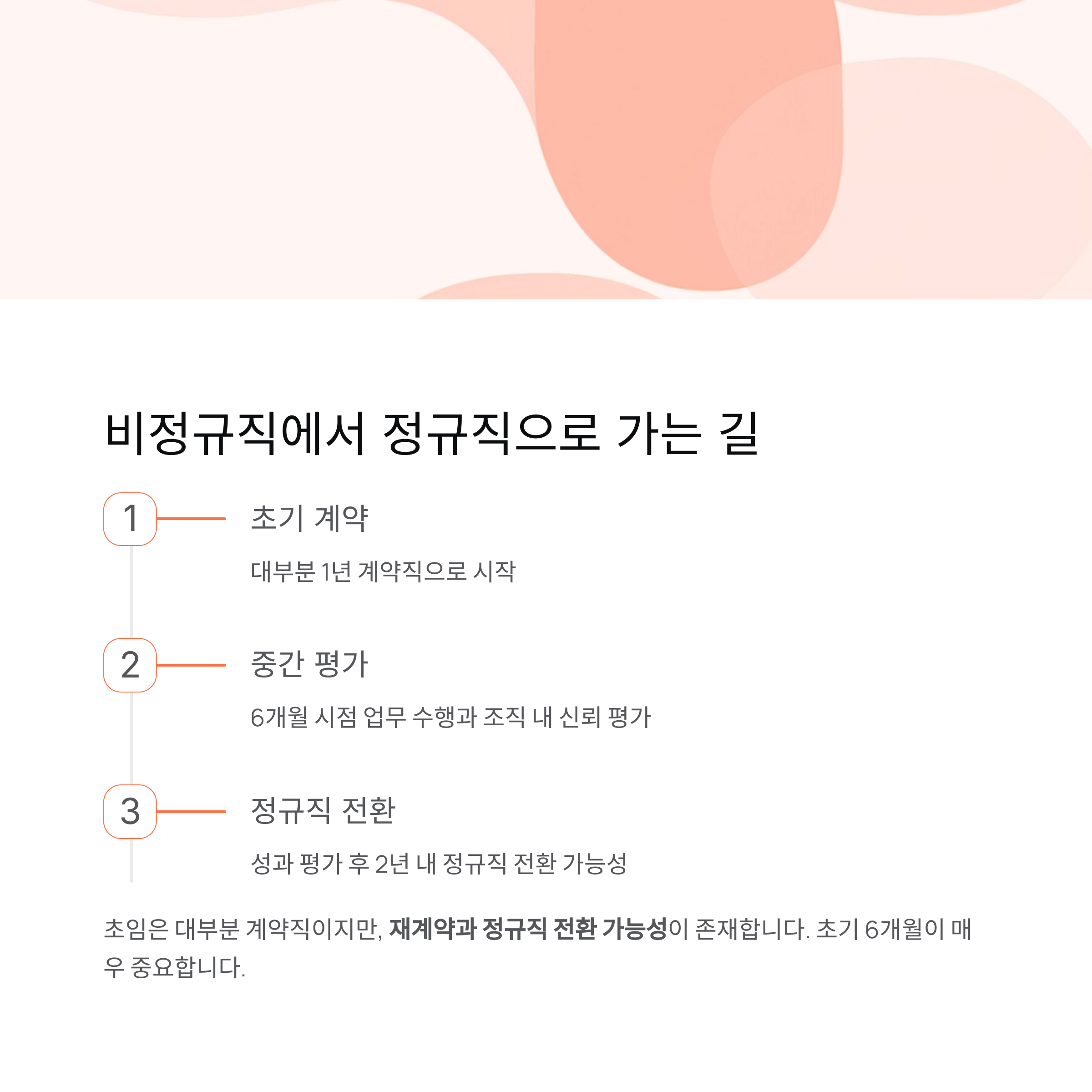 성과 평가 후 2년 내 정규직 전환이 이뤄지는 경우가 많습니다.