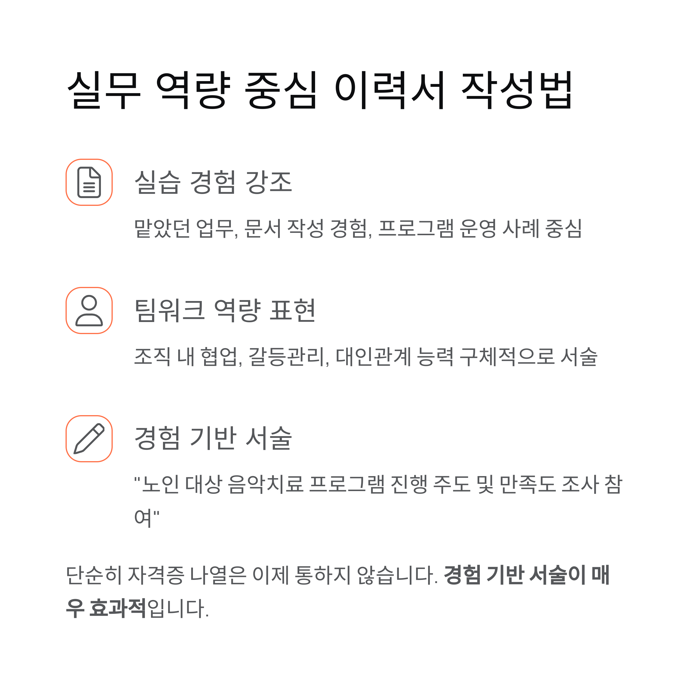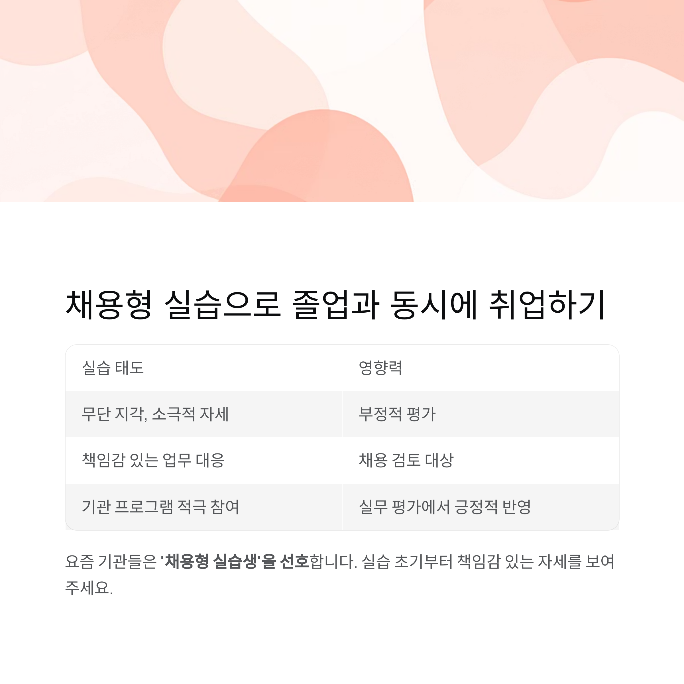 실제 현장에서는 실습 경험과 기관 적응력이 무엇보다 중요하기 때문입니다.