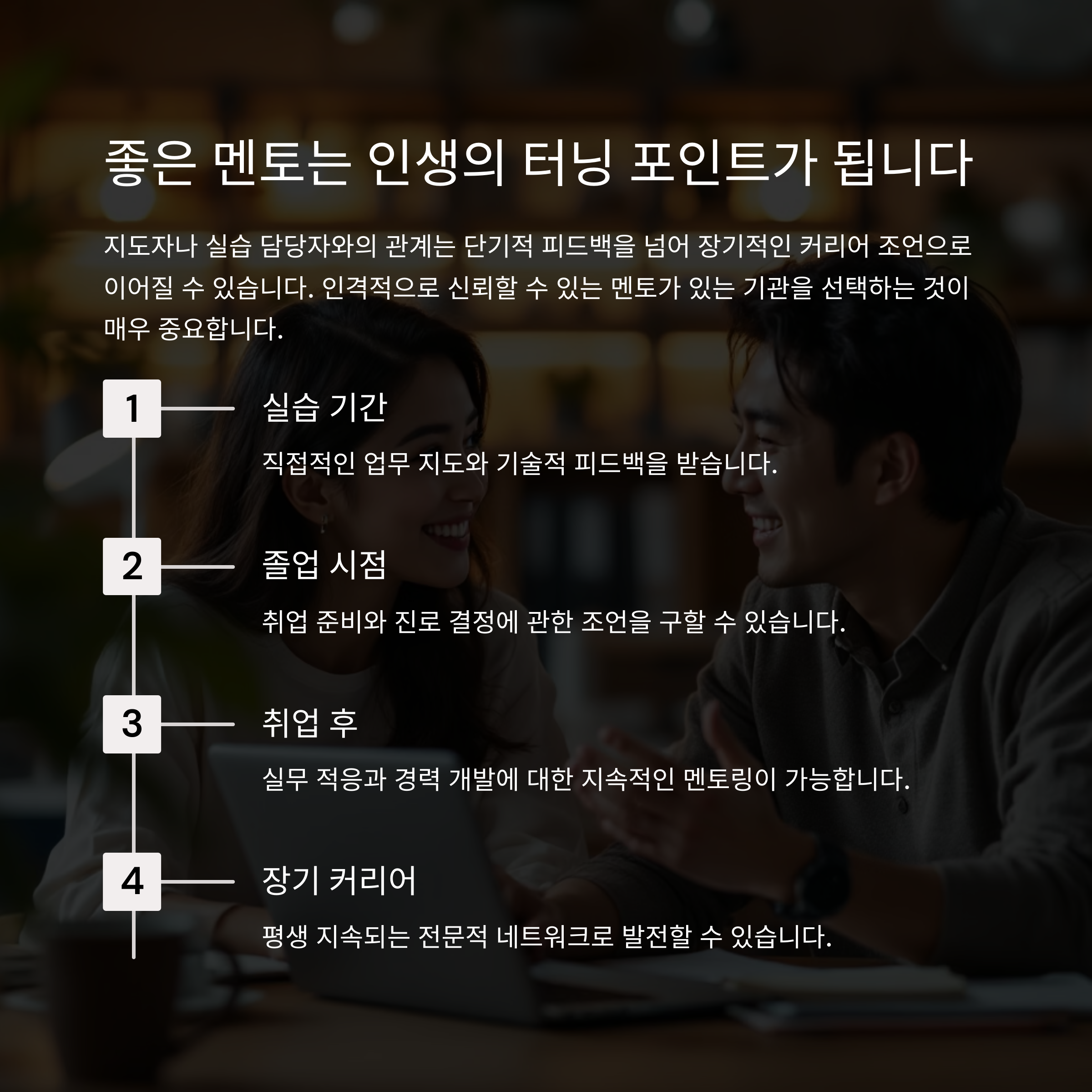멘토의 조언이 앞으로의 선택에 결정적 영향을 주는 경우도 적지 않습니다.