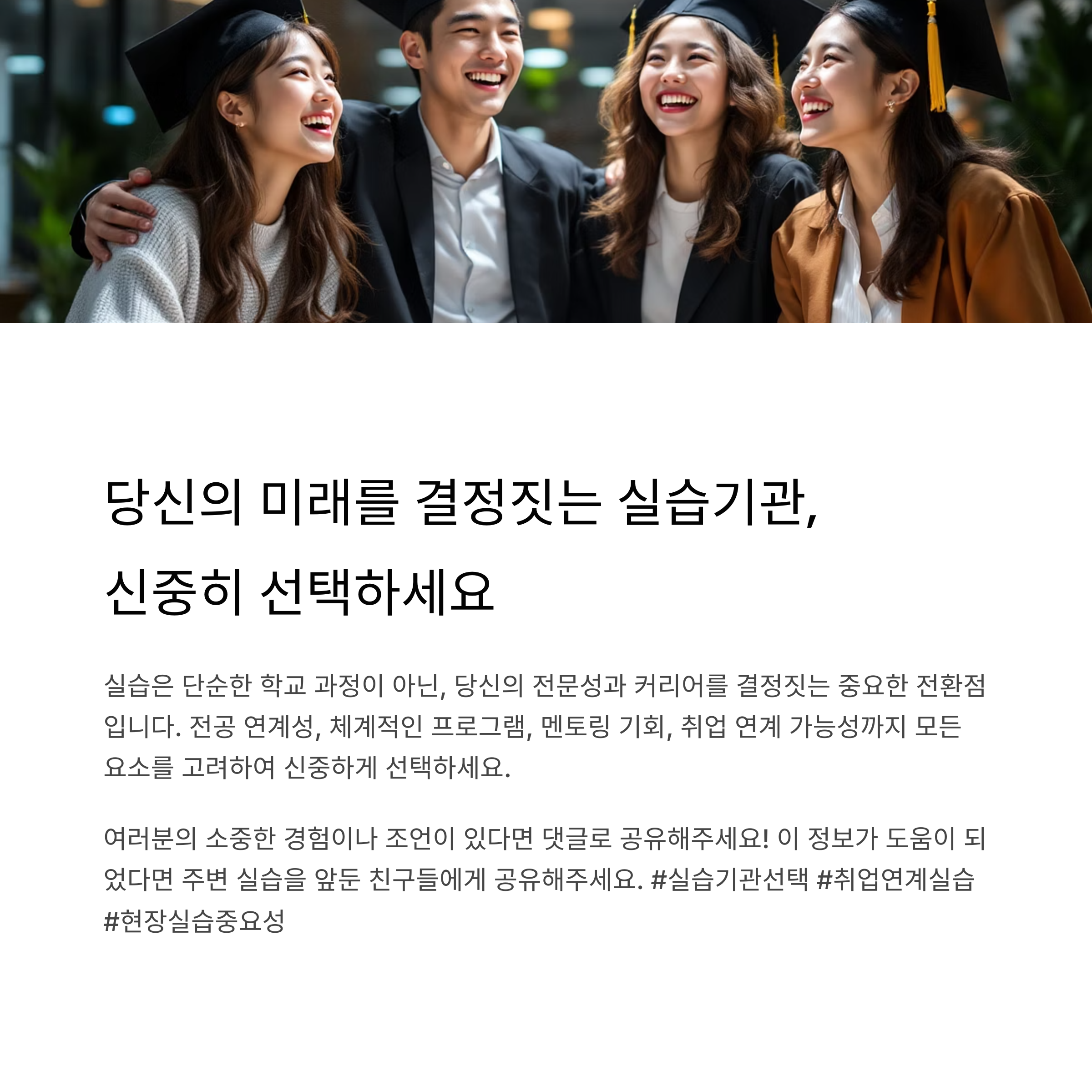함께 고려하여 실습기관을 선택한다면 보다 전략적인 경력 개발이 가능합니다.