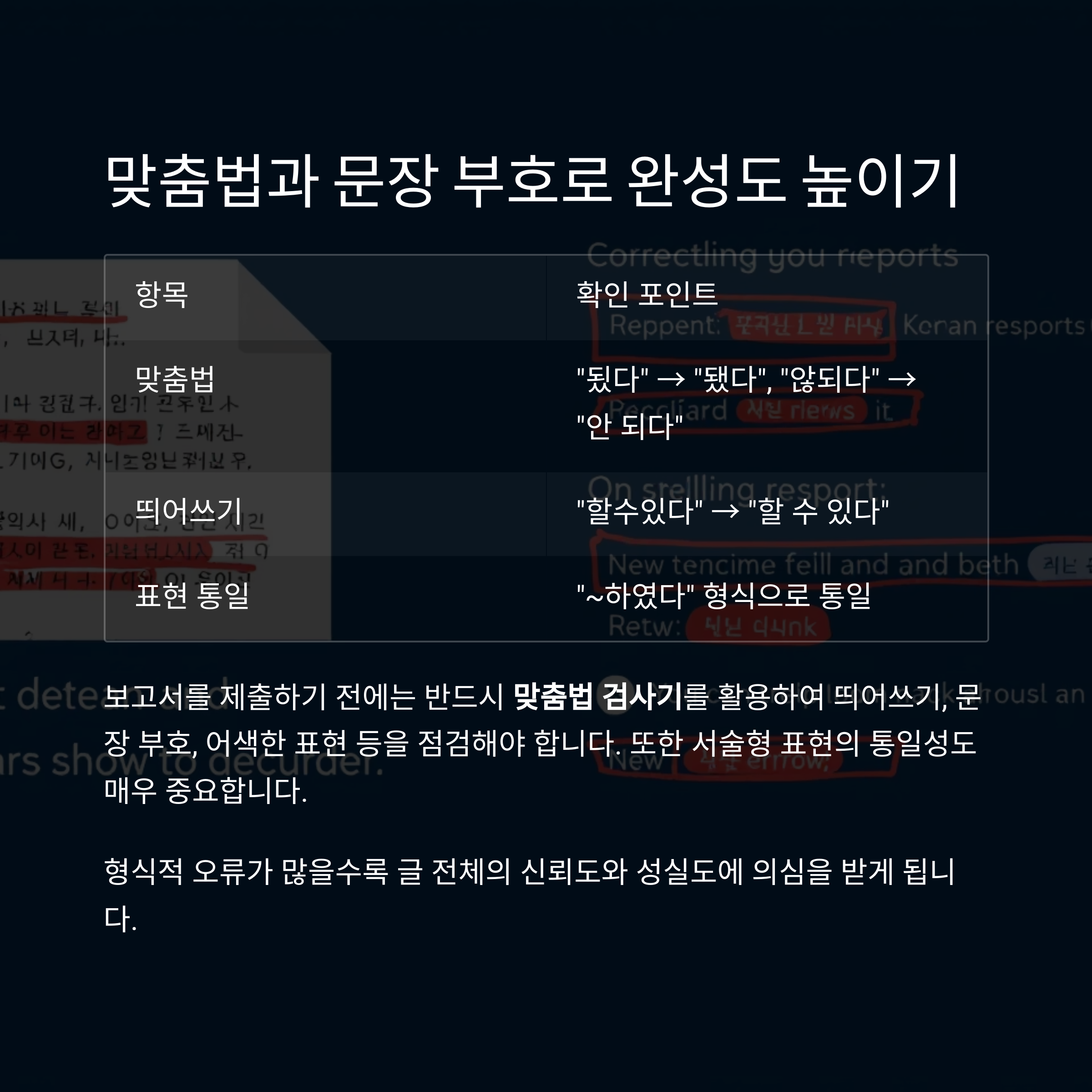 맞춤법과 문장 부호는 정확히 수정했는가?