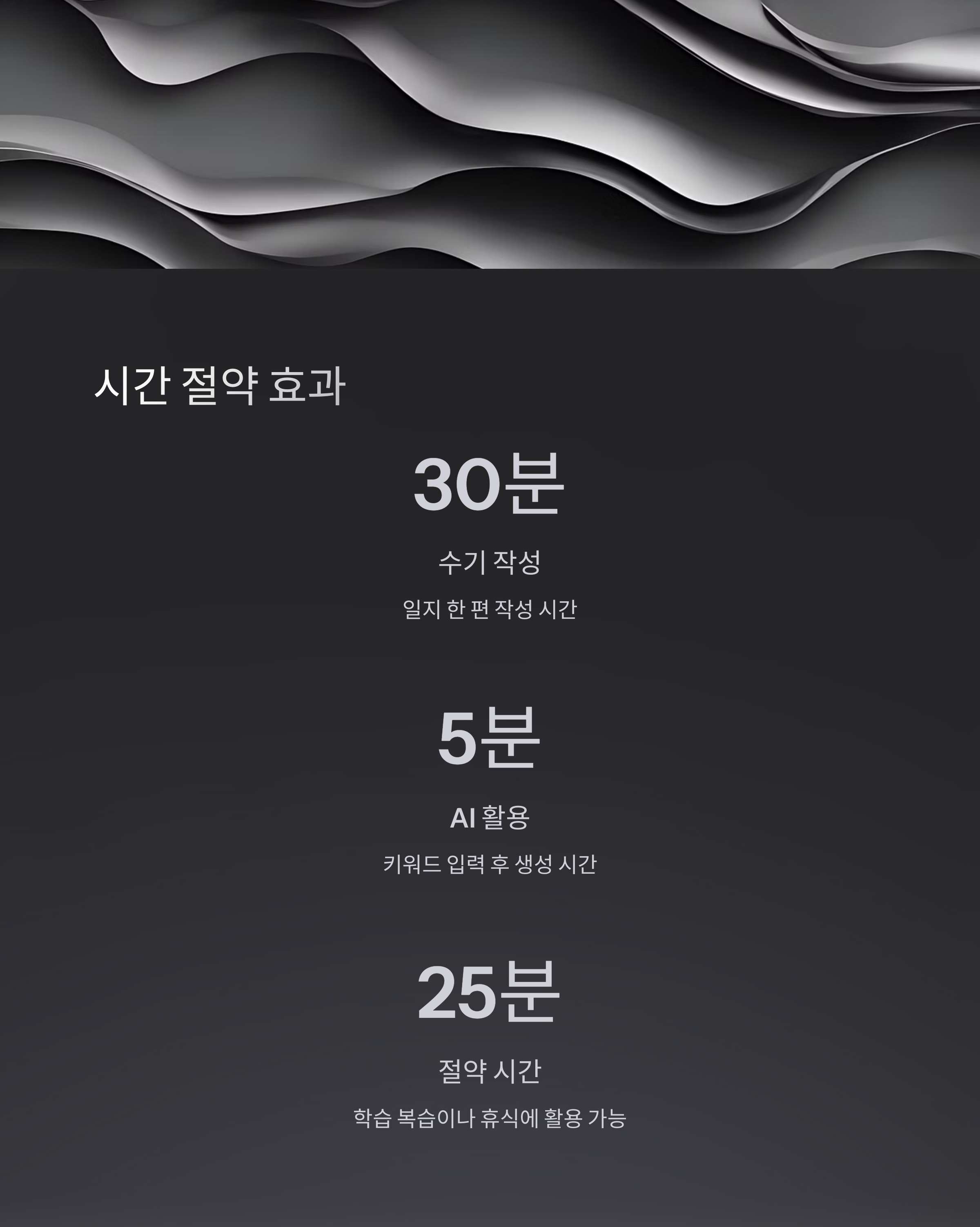 하루에 일지를 수기로 쓰면 30분, AI를 활용하면 5분 이내 가능해집니다.
