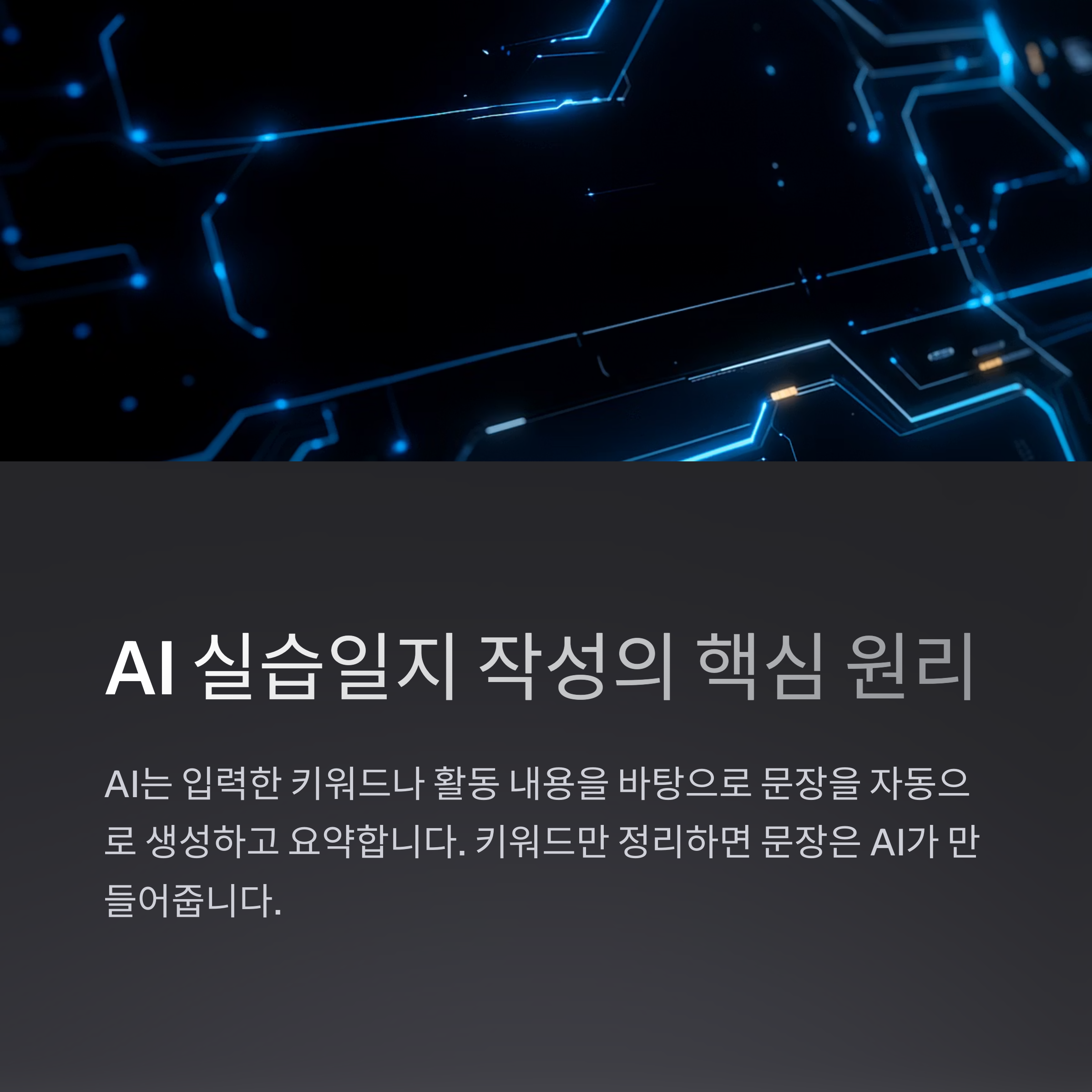AI는 입력한 키워드나 활동 내용을 바탕으로 문장을 생성하고 요약할 수 있습니다.