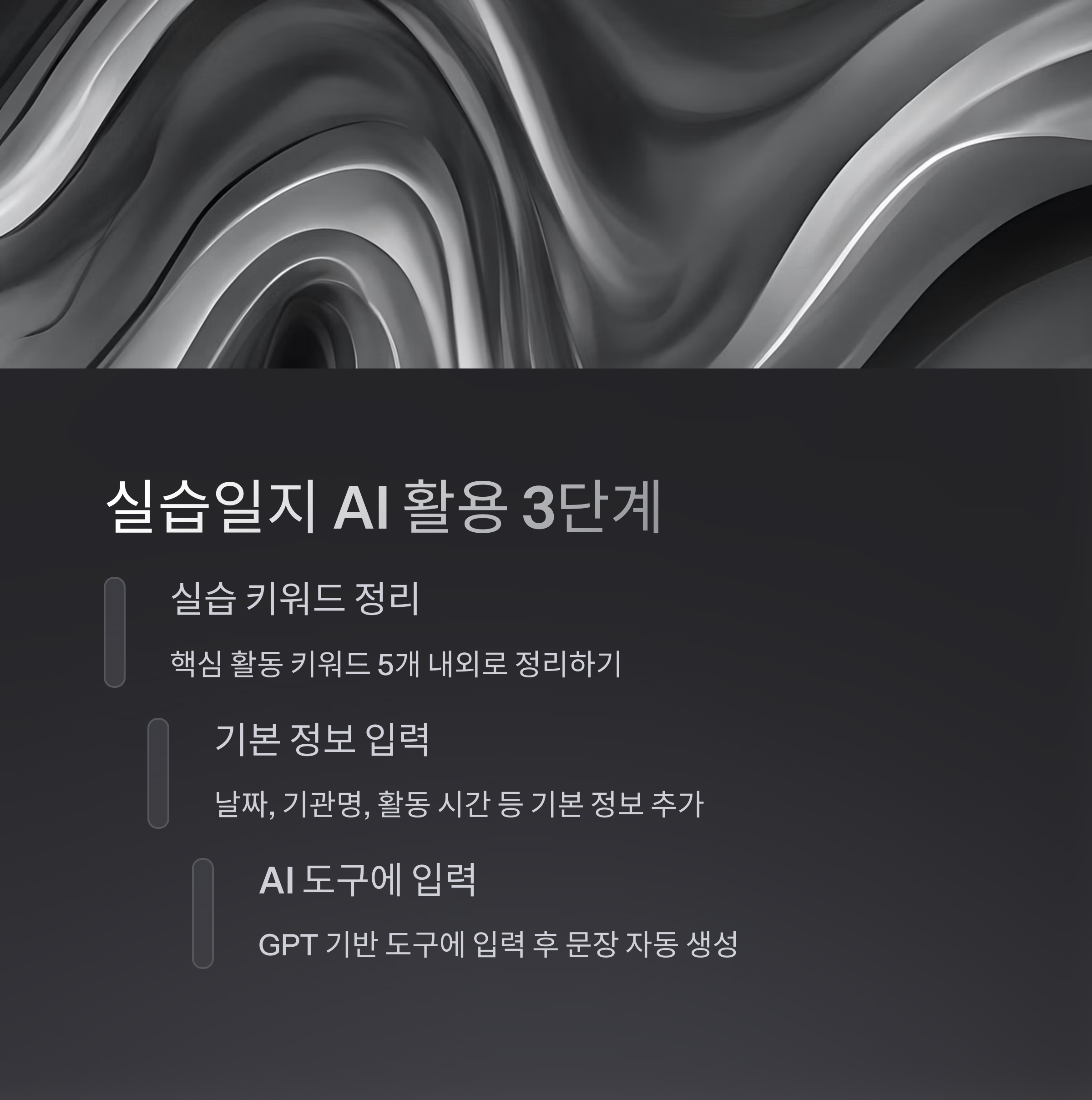 아래는 효율적인 AI 일지 자동화 작성법 3단계입니다.