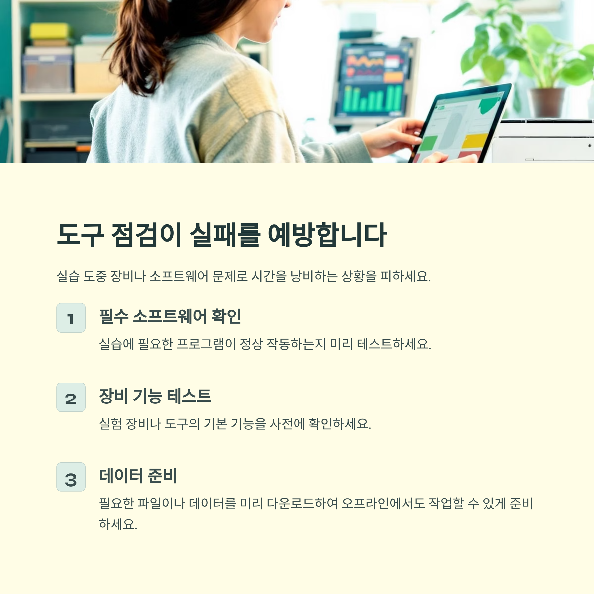 4. 실습 도구나 장비는 사전 점검이 핵심입니다