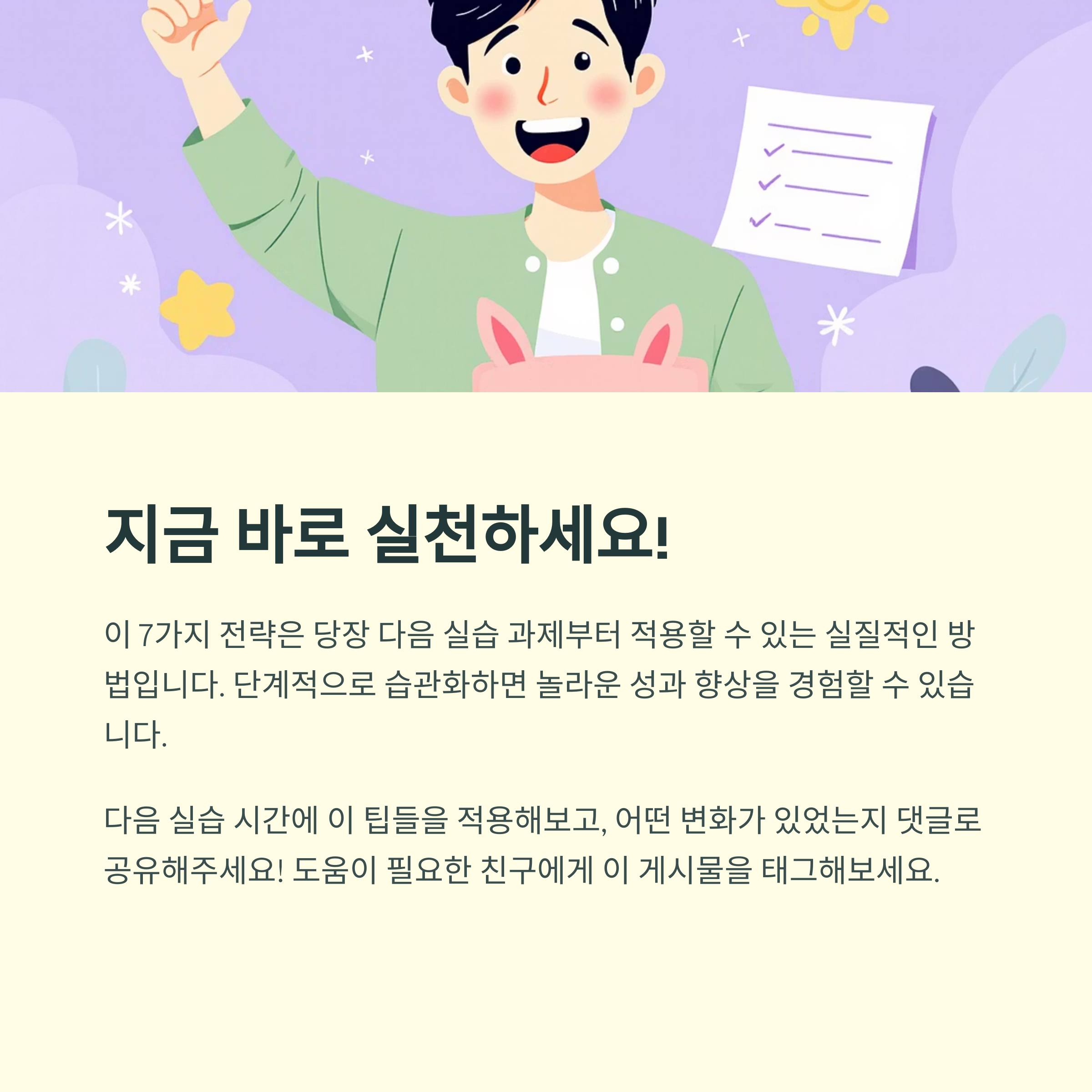 실습 과제를 수행하는 과정은 단순한 이론 학습과는 다른 집중력과 실전 감각을 요구합니다. 이 글에서는 실습 시간 내 과제를 효율적으로 수행하고 성과를 높이기 위한 핵심 팁 7가지를 소개합니다. 실제 적용 가능한 방법 중심으로 정리했으니, 과제 진행이 막막하거나 시간이 부족할 때 참고하시면 많은 도움이 될 것입니다.