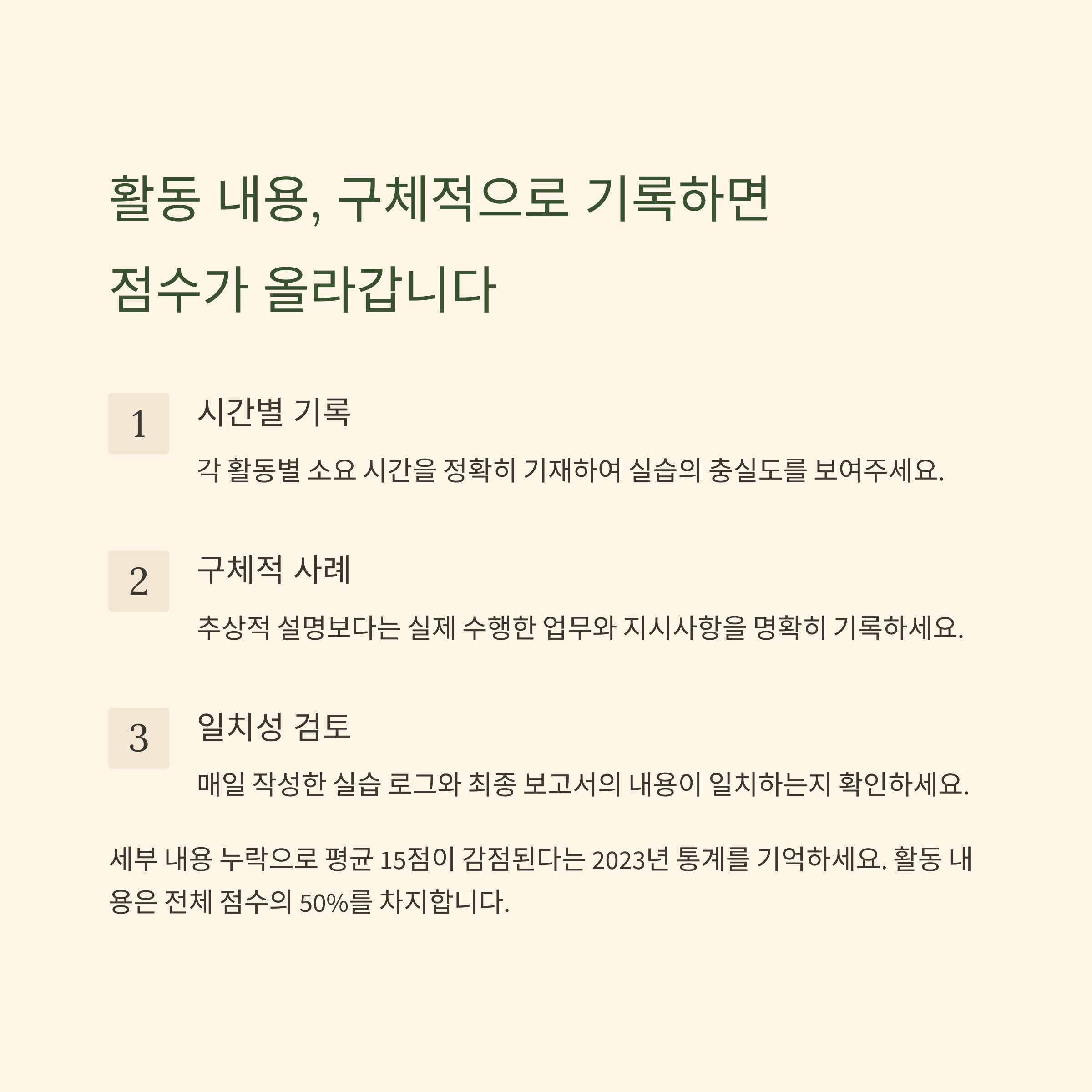 활동 내용 누락 - 상세히 적는 습관 들이기