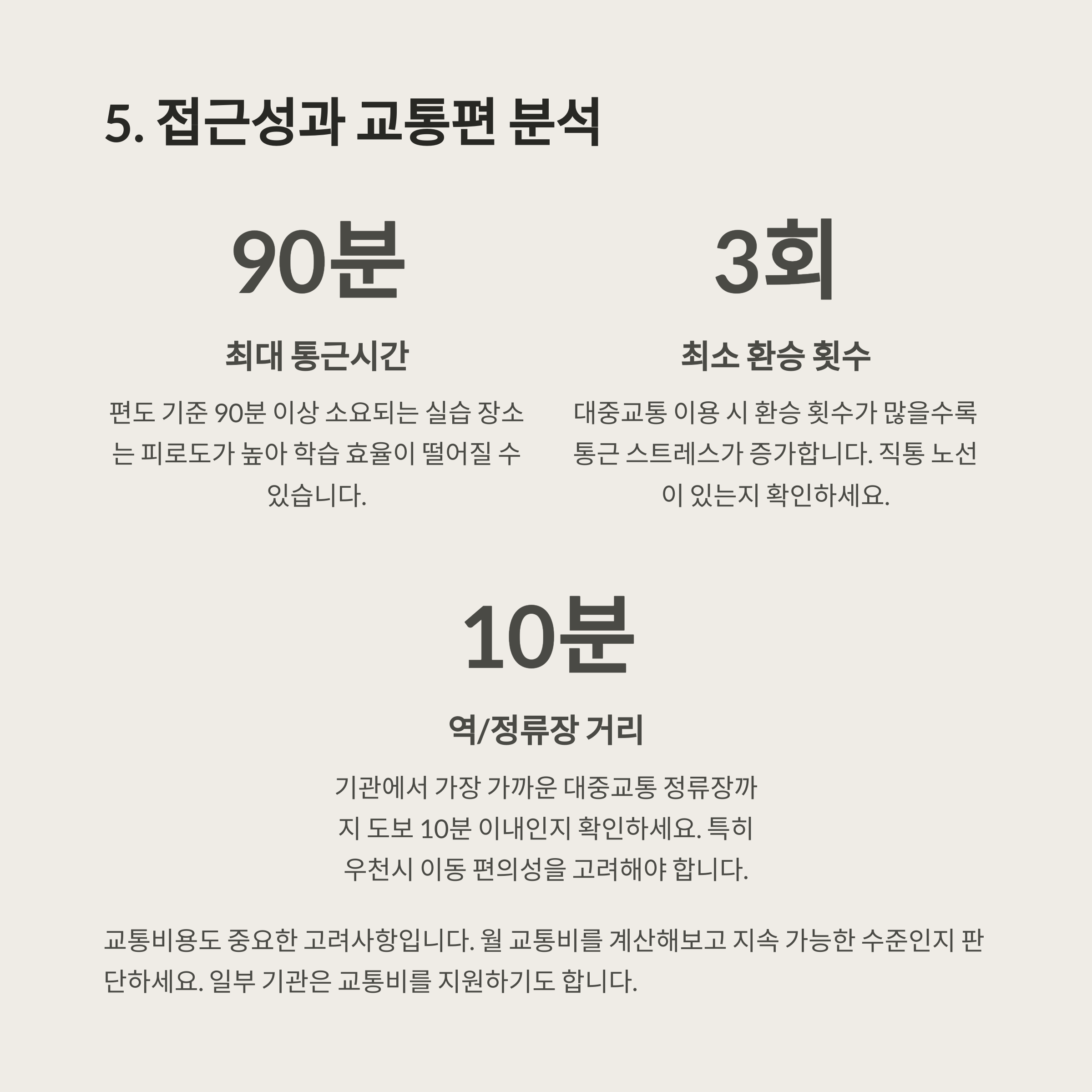 실습 기간 동안의 교통수단, 소요 시간, 비용 등을 계산해 보고