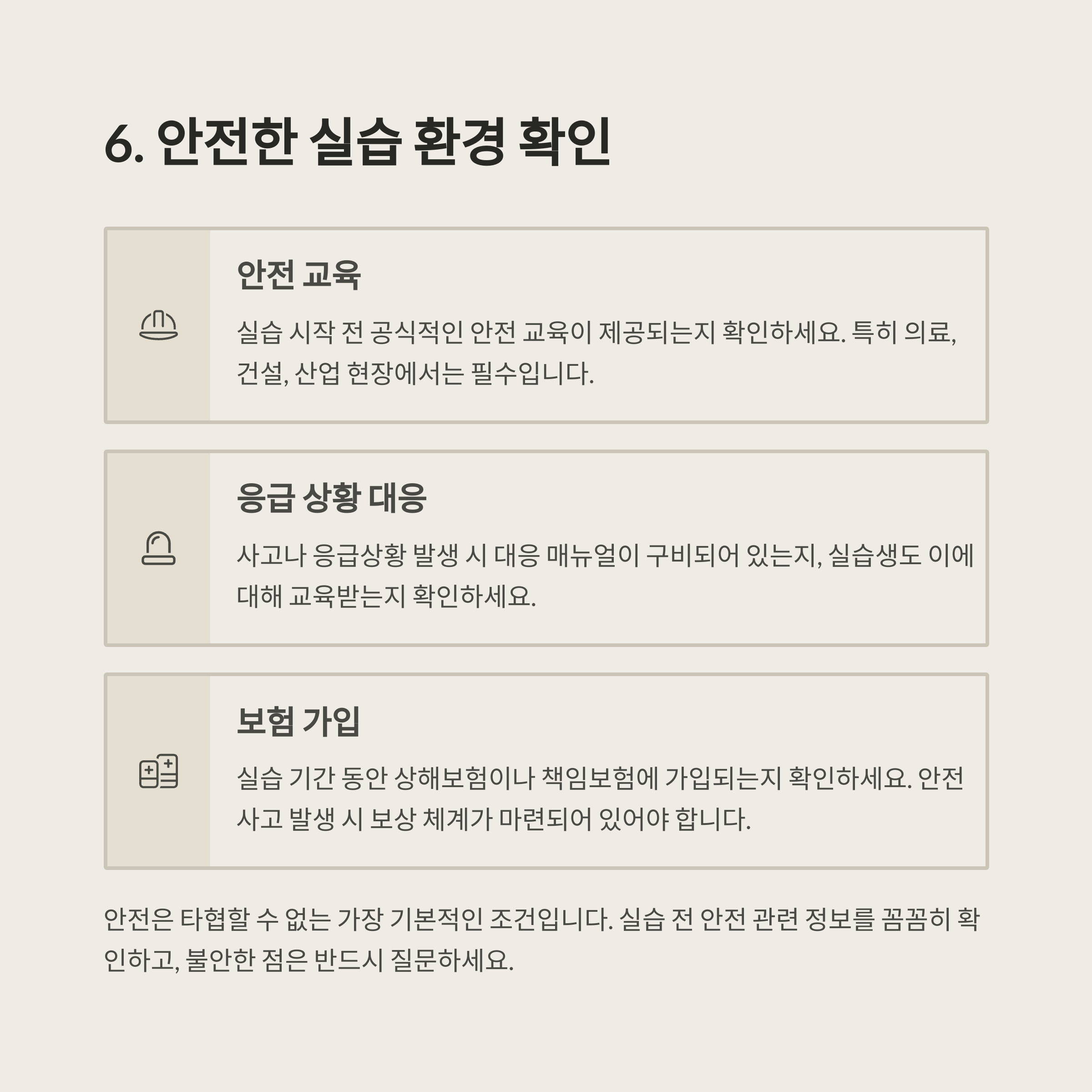 이 글에서는 실습 장소를 결정할 때 반드시 체크해야 할 조건들을 구체적으로 안내드립니다.