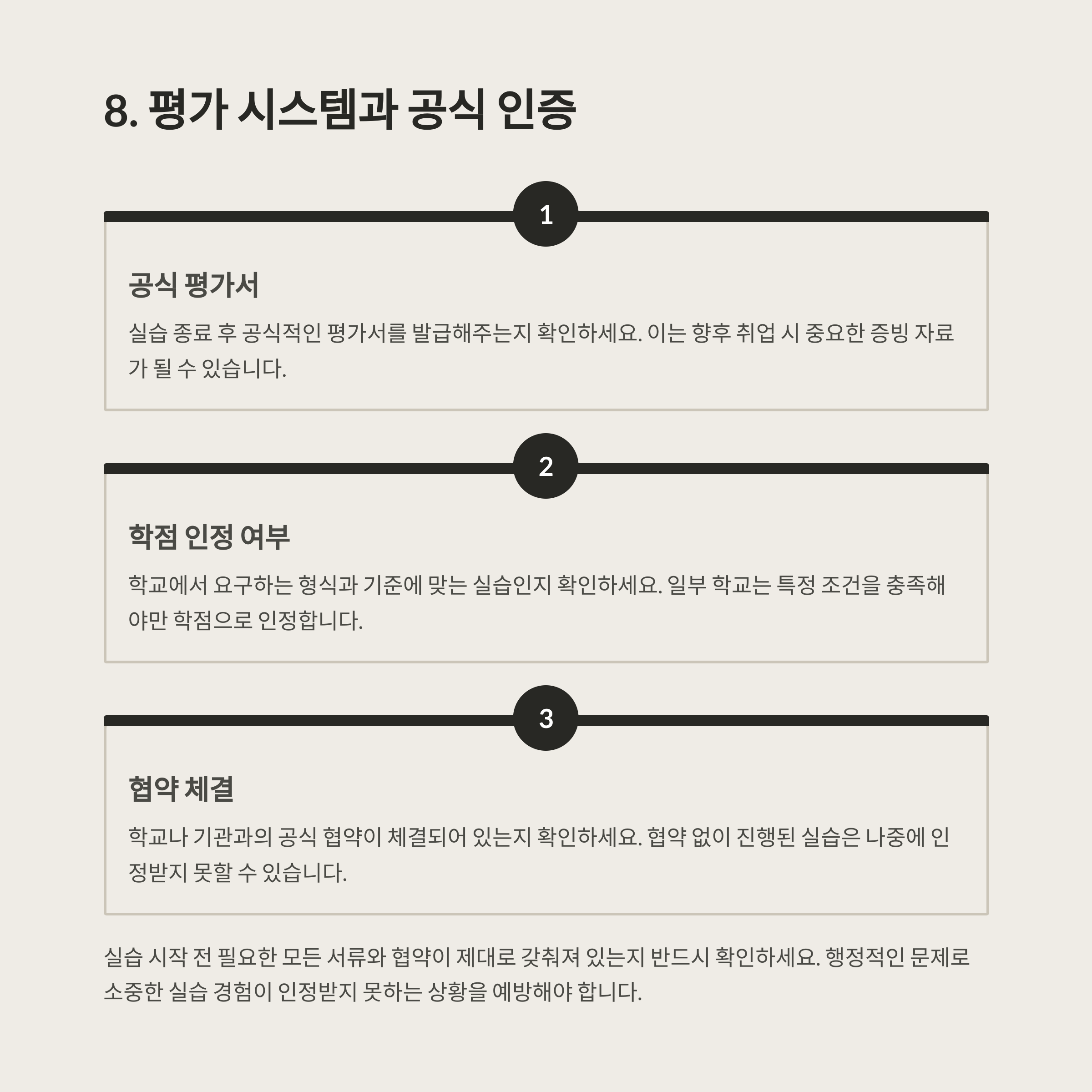 일부 기관은 협약 없이 진행된 실습을 인정하지 않는 경우도 있으므로