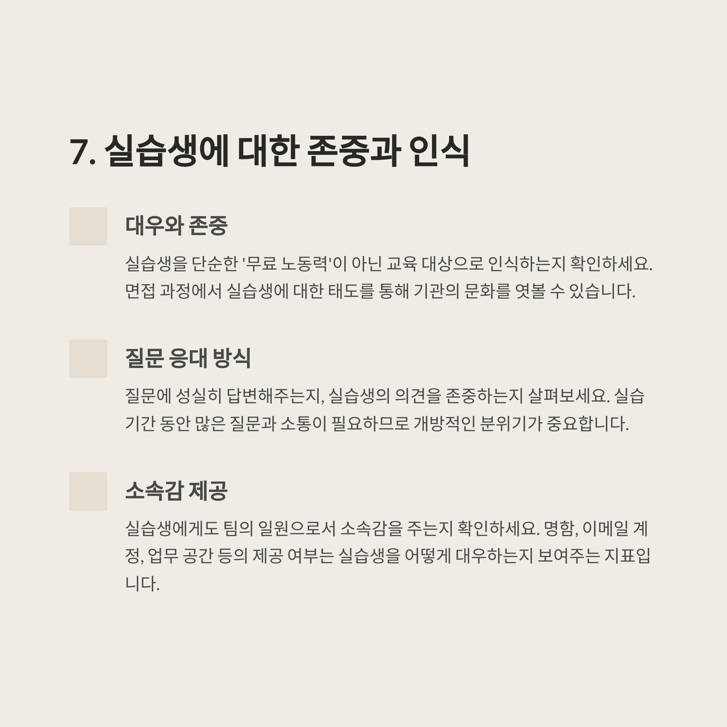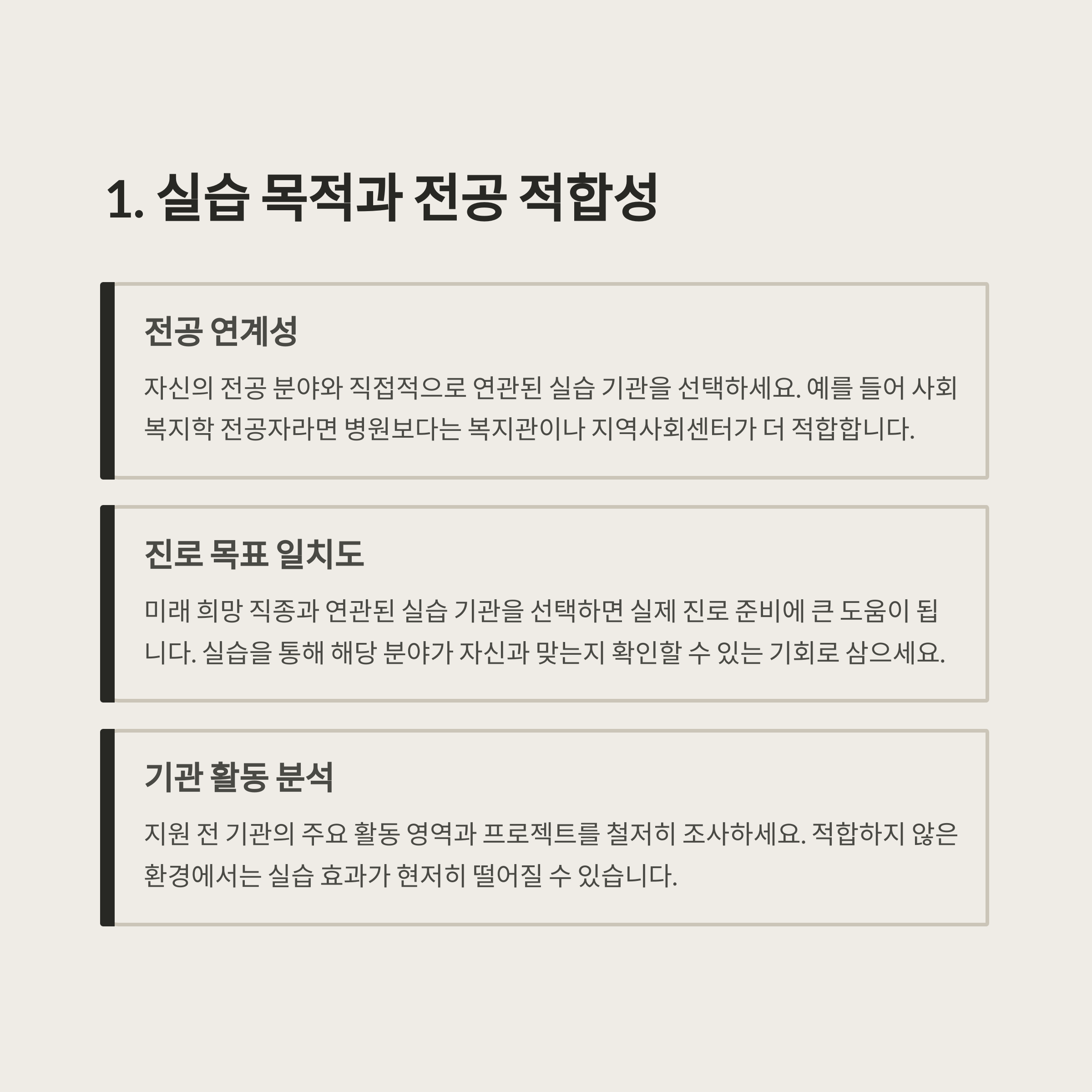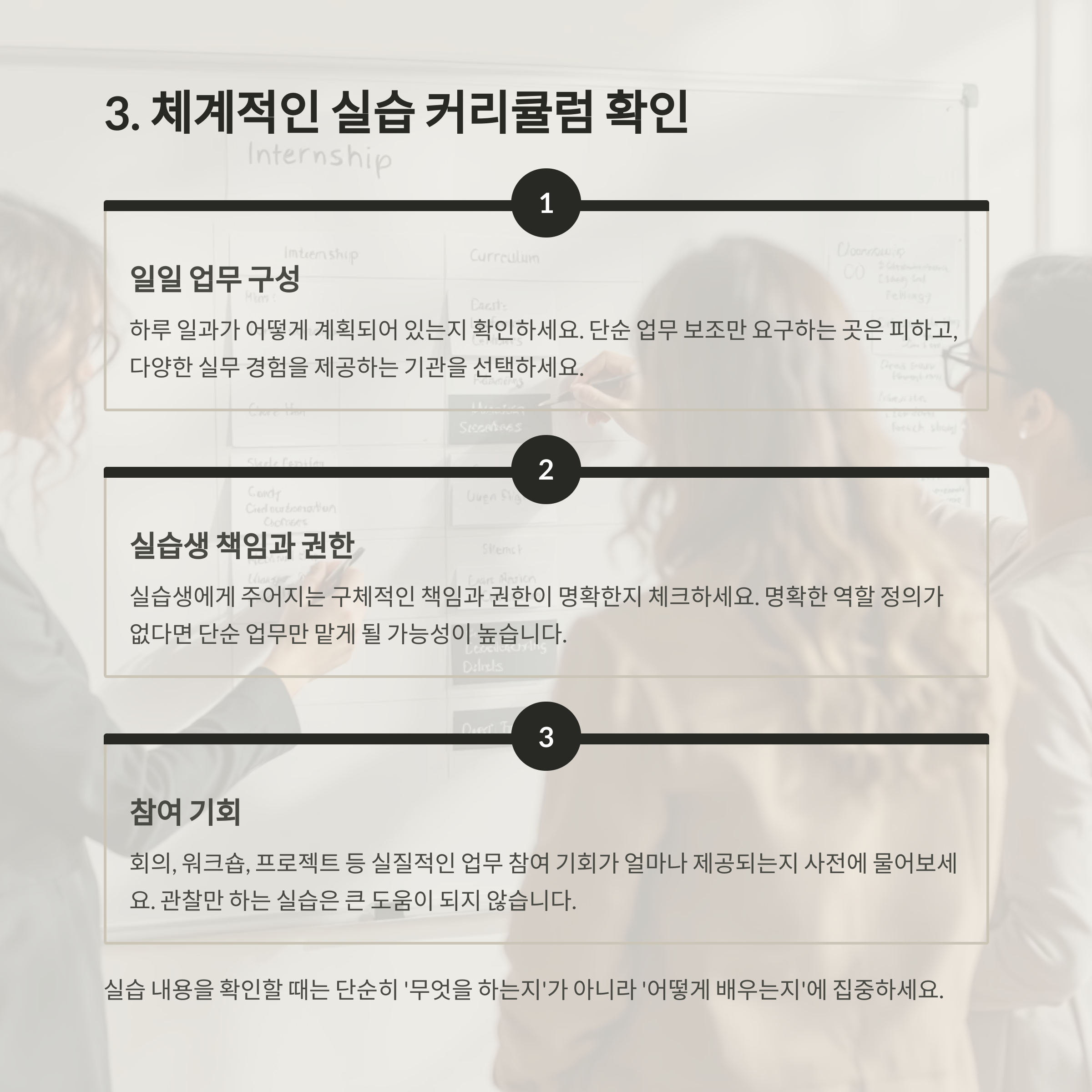실습생을 단순히 '일손'으로 여기는 기관은 피하는 것이 좋습니다.