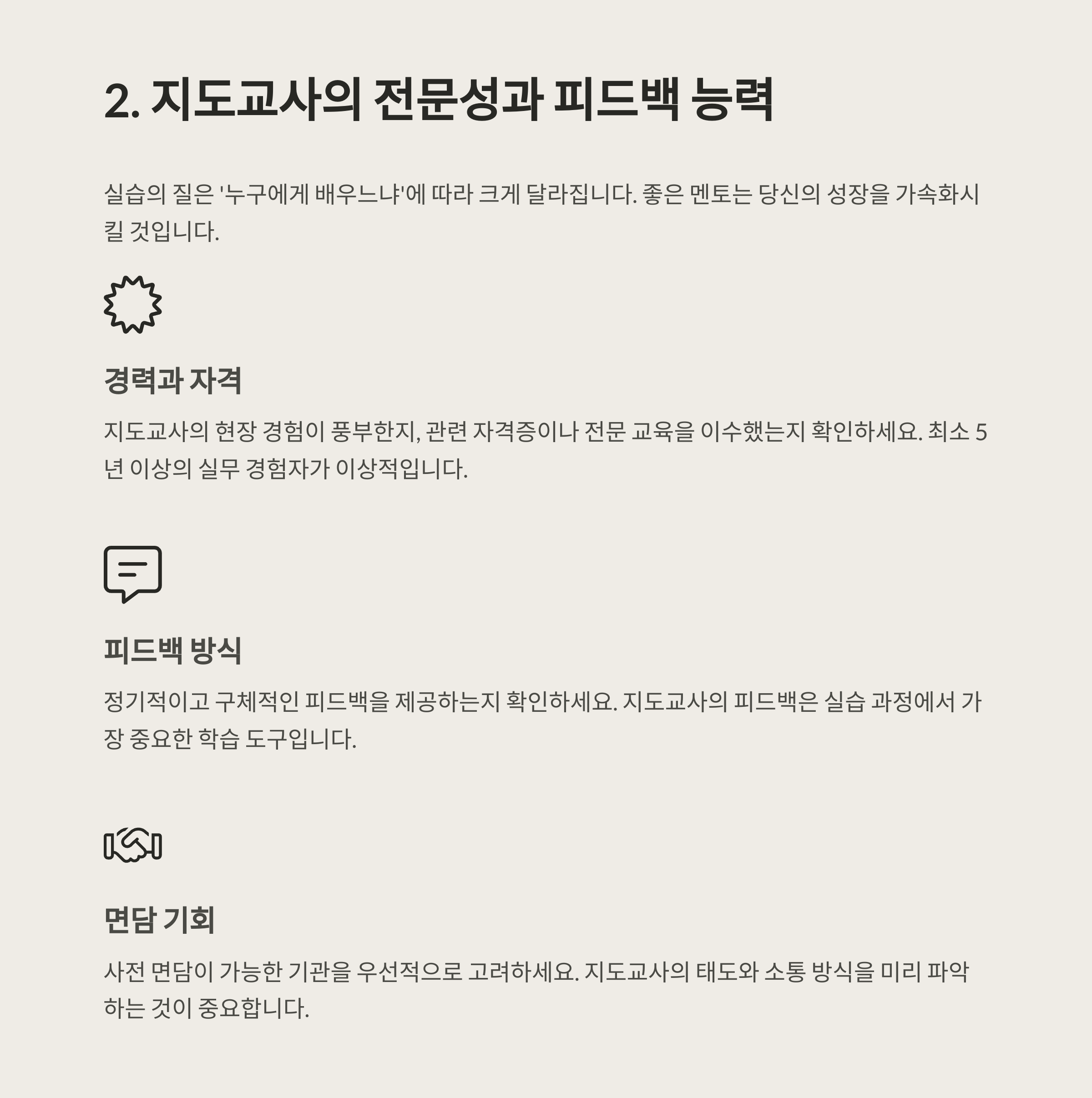 이 글에서는 실습 장소를 결정할 때 반드시 체크해야 할 조건들을 구체적으로 안내드립니다.