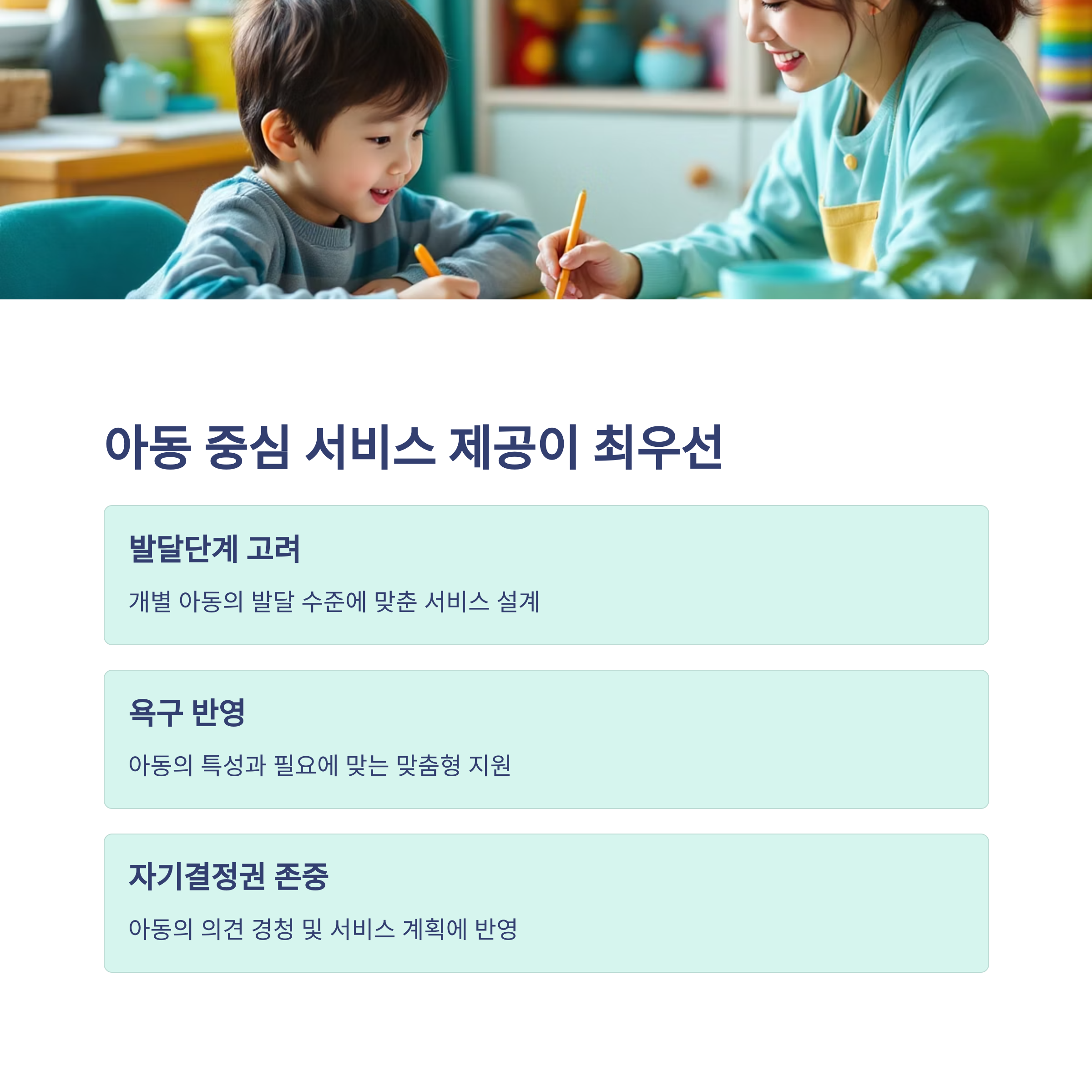 개별 아동의 발달단계, 욕구, 특성을 반영한 서비스를 제공하고
