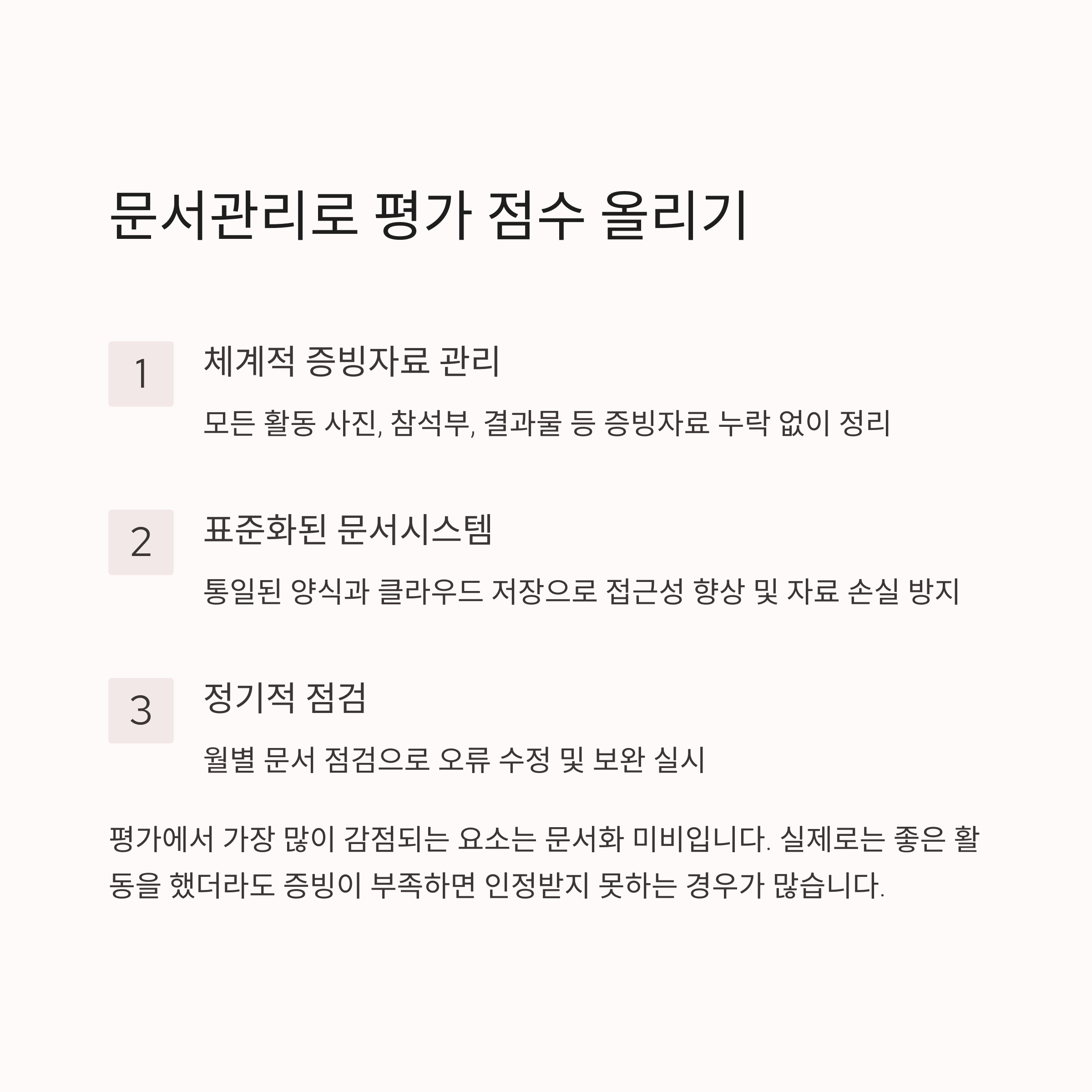 이 외에도 문서 관리의 투명성이 중요하게 평가됩니다.