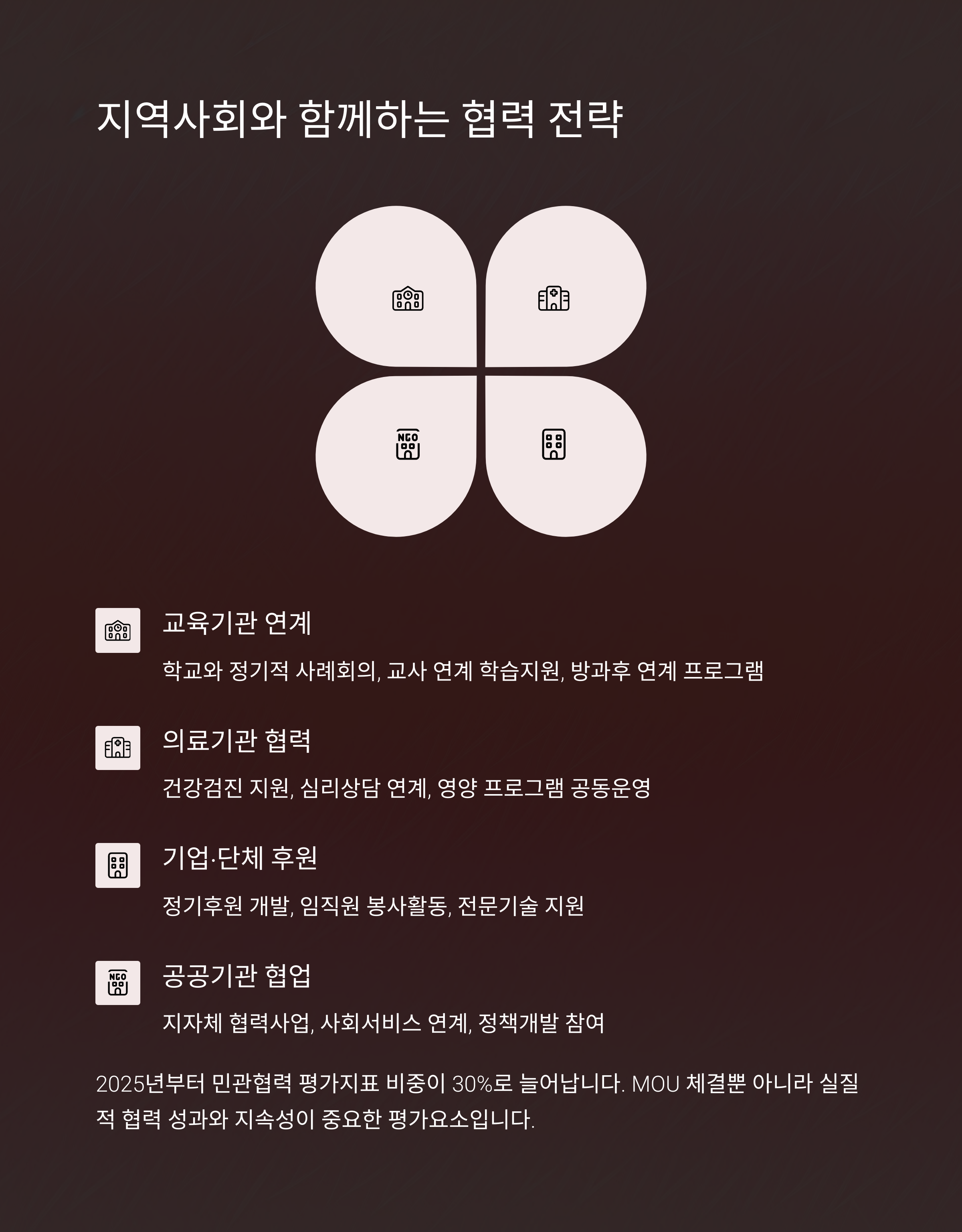 지역사회와의 협력도 주요 평가 항목입니다.
