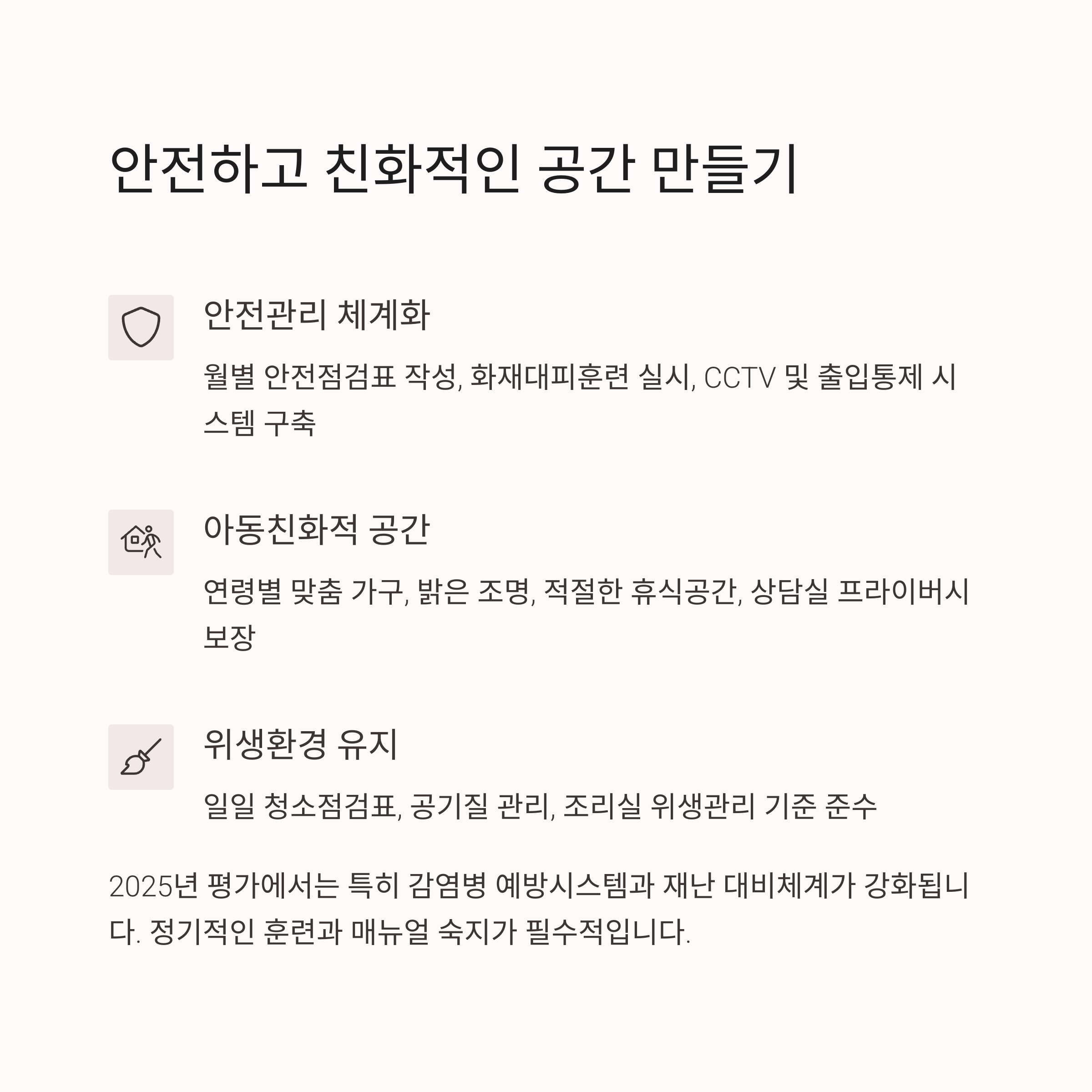 "아동이 안전하고 편안하게 지낼 수 있는 공간"이 되어야 합니다 🏡